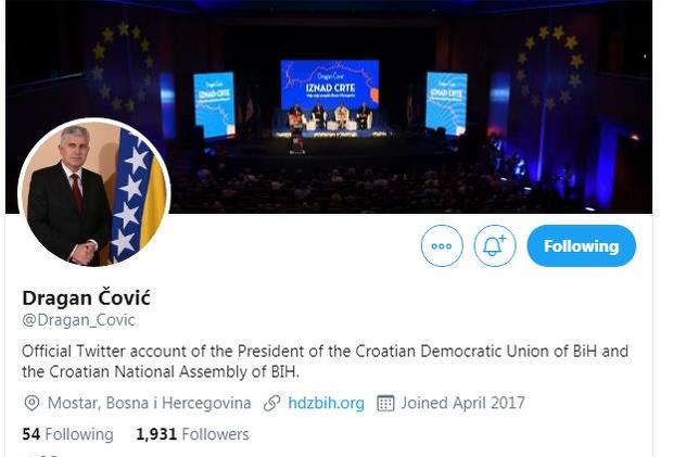 Njegov kolega Dragan Čović ima službeni profil na Twitteru koji prati skoro dvije tisuće tviteraša. Čovićev Twitter nalog se redovno ažurira, a moderatori objavljuju uglavnom njegove intervjue, priopćenja uz poneki post na određenu temu.