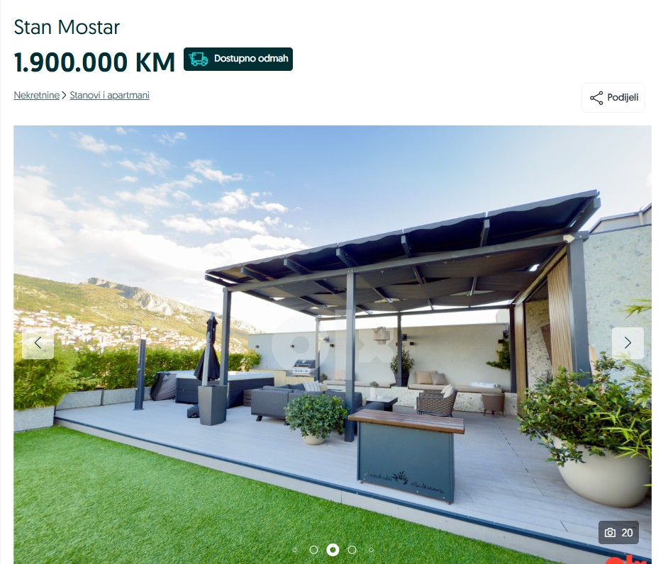 Riječ je o luksuznom stanu u Mostaru, na adresi Kardinala Stepinca 12.