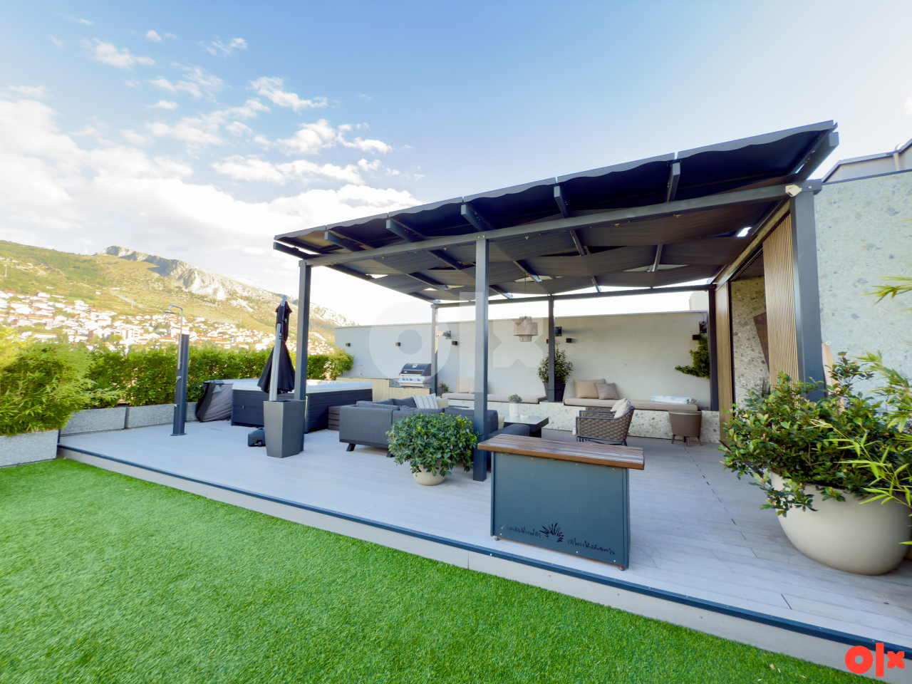 Nekretnina ima korisnu površinu od 264 četvorna metra, tri kupaonice, terasu površine 250 četvornih metara i dva garažna mjesta ukupne površine 30 četvornih metara, uključena u cijenu.