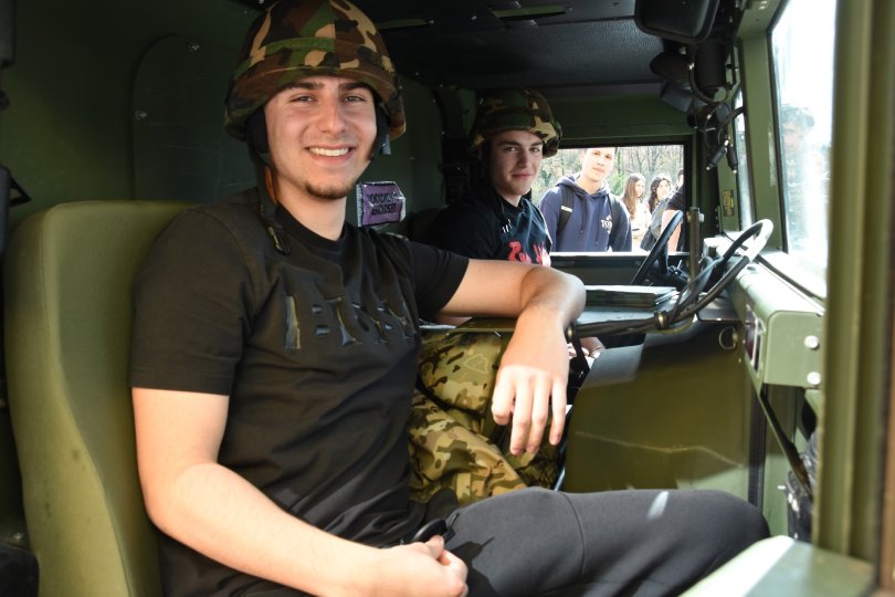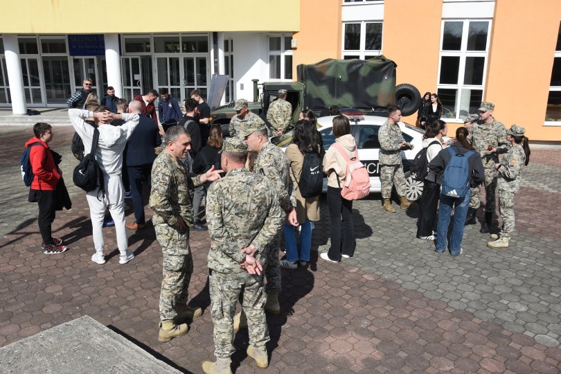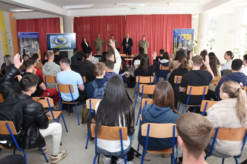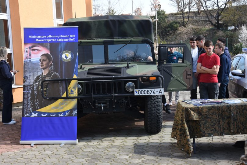 Za današnju prezentaciju pripremljeni su promotivni materijali, a srednjoškolci su mogli razgledati i vozila Oružanih snaga BiH.