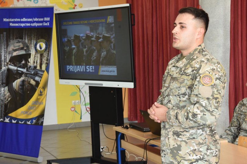 Bojnik Zrinko Vrankić, načelnik Centra za novačenje i tranziciju Čapljina, čitlučkim je srednjoškolcima predstavio način prijave i potrebnu dokumentaciju, uz što se osvrnuo i na cjelokupan rad Oružanih snaga BiH, dok su vlastita iskustva s nazočnima podijelili potporučnik Veselko Stojić i narednik Ante – Antoni Tadić.