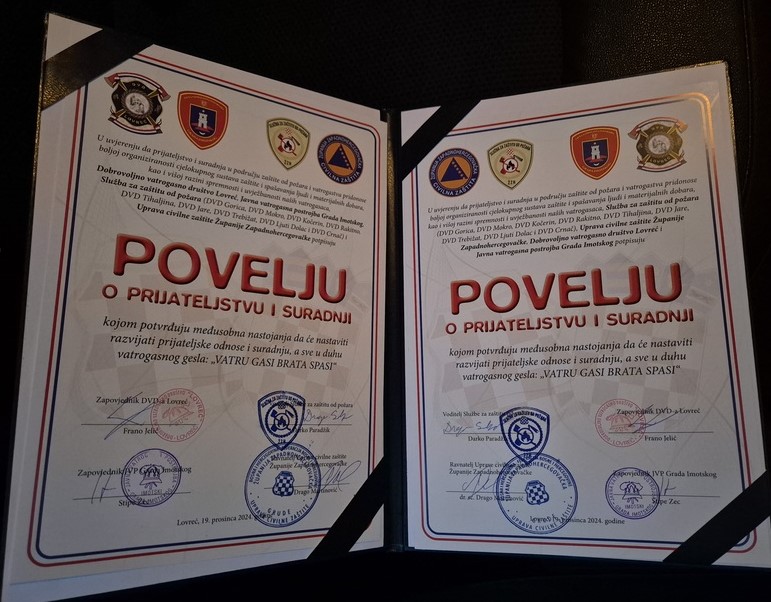 „Potpisivanje ove Povelje je samo formalno jer mi već duže vrijeme s našim prijateljima iz Županije Zapadnohercegovačke surađujemo i pomažemo jedni drugima“, rekao je, između ostalog, Stipe Zec zapovjednik JVP Grada Imotskog.