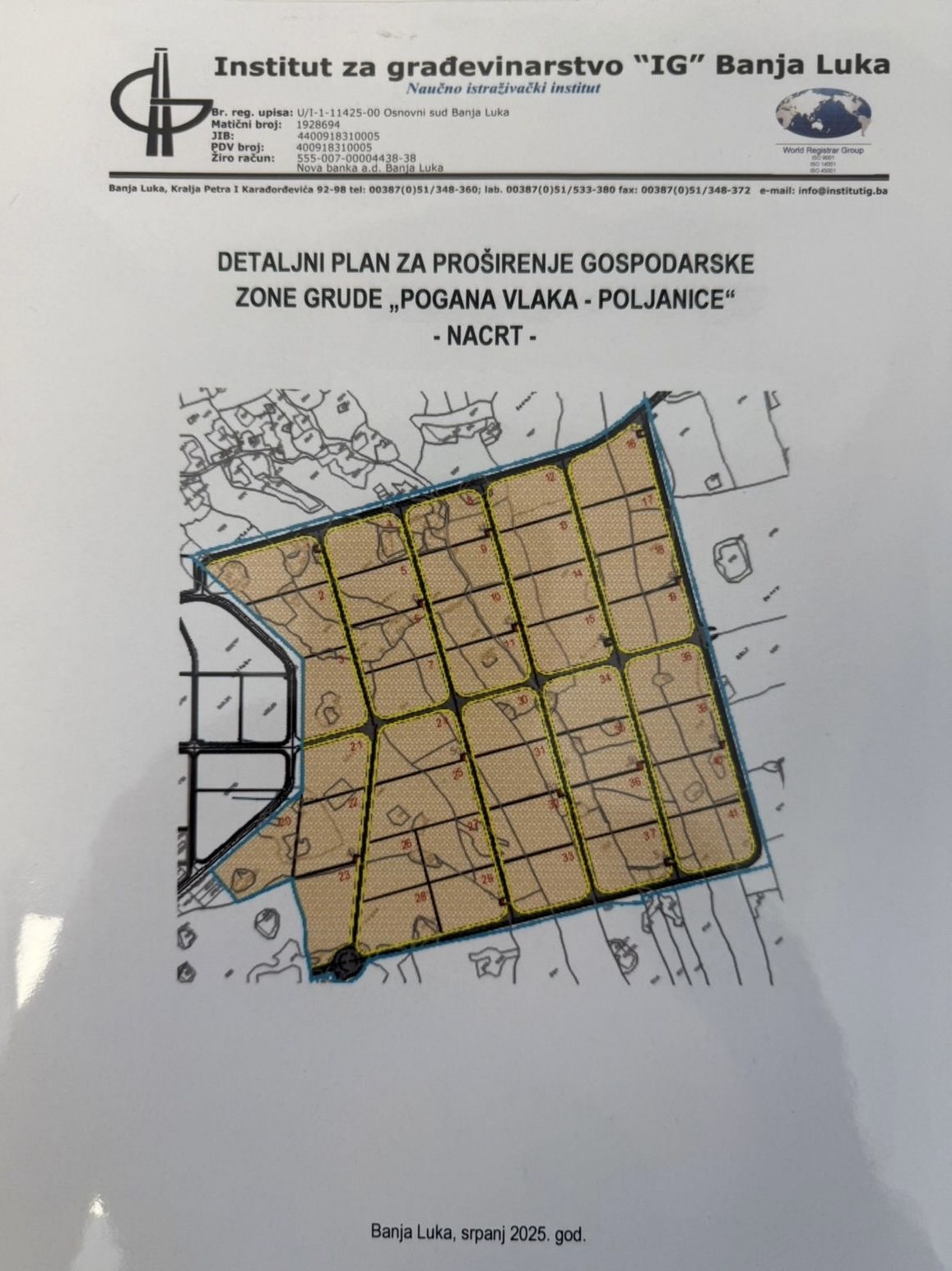 Izrađivač nacrta, IG d.o.o. Banja Luka, sudjelovao je u svojstvu izlagača te je upoznao nazočne s osnovnim elementima nacrta detaljnog plana proširenja gospodarske zone.
