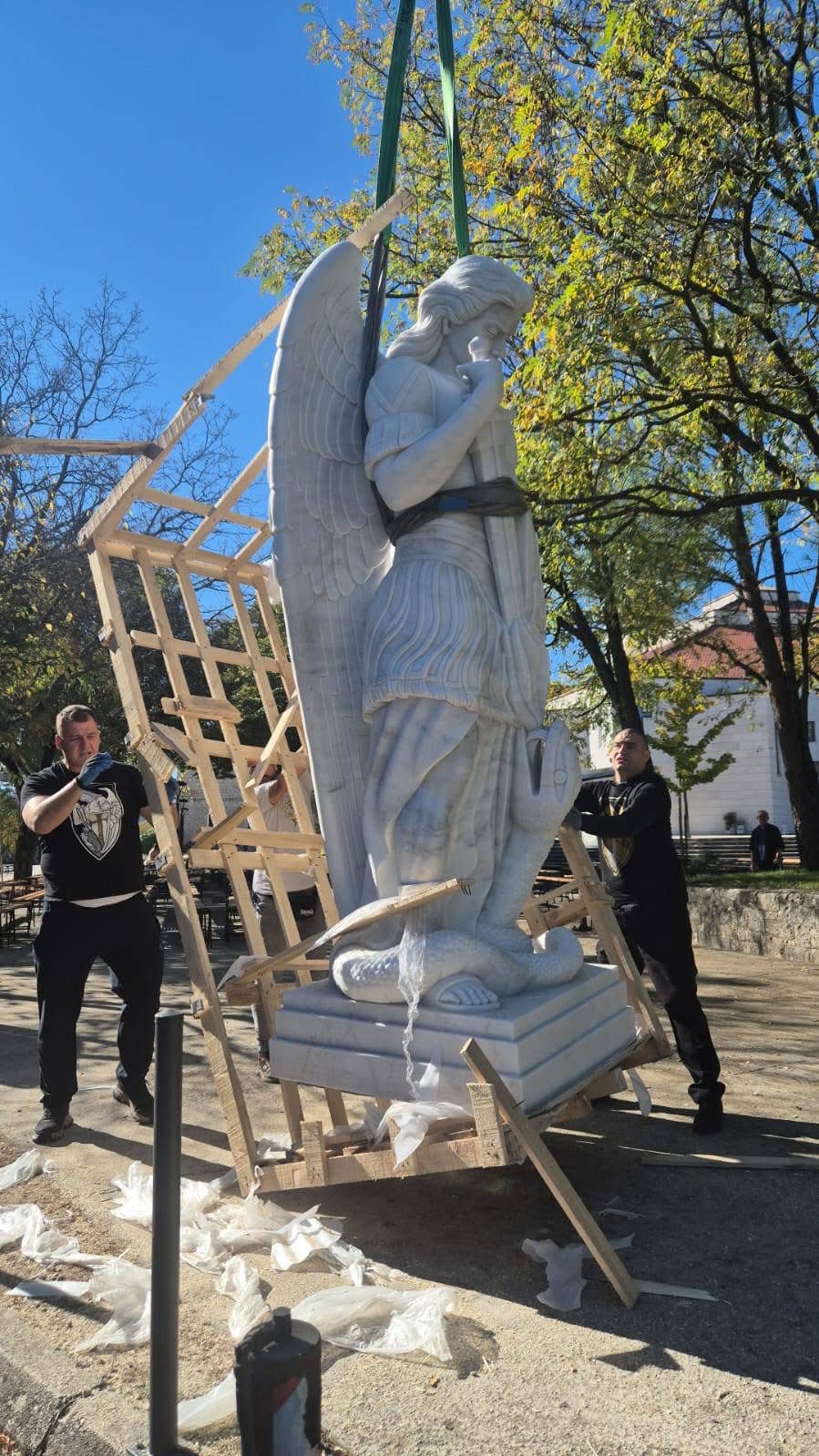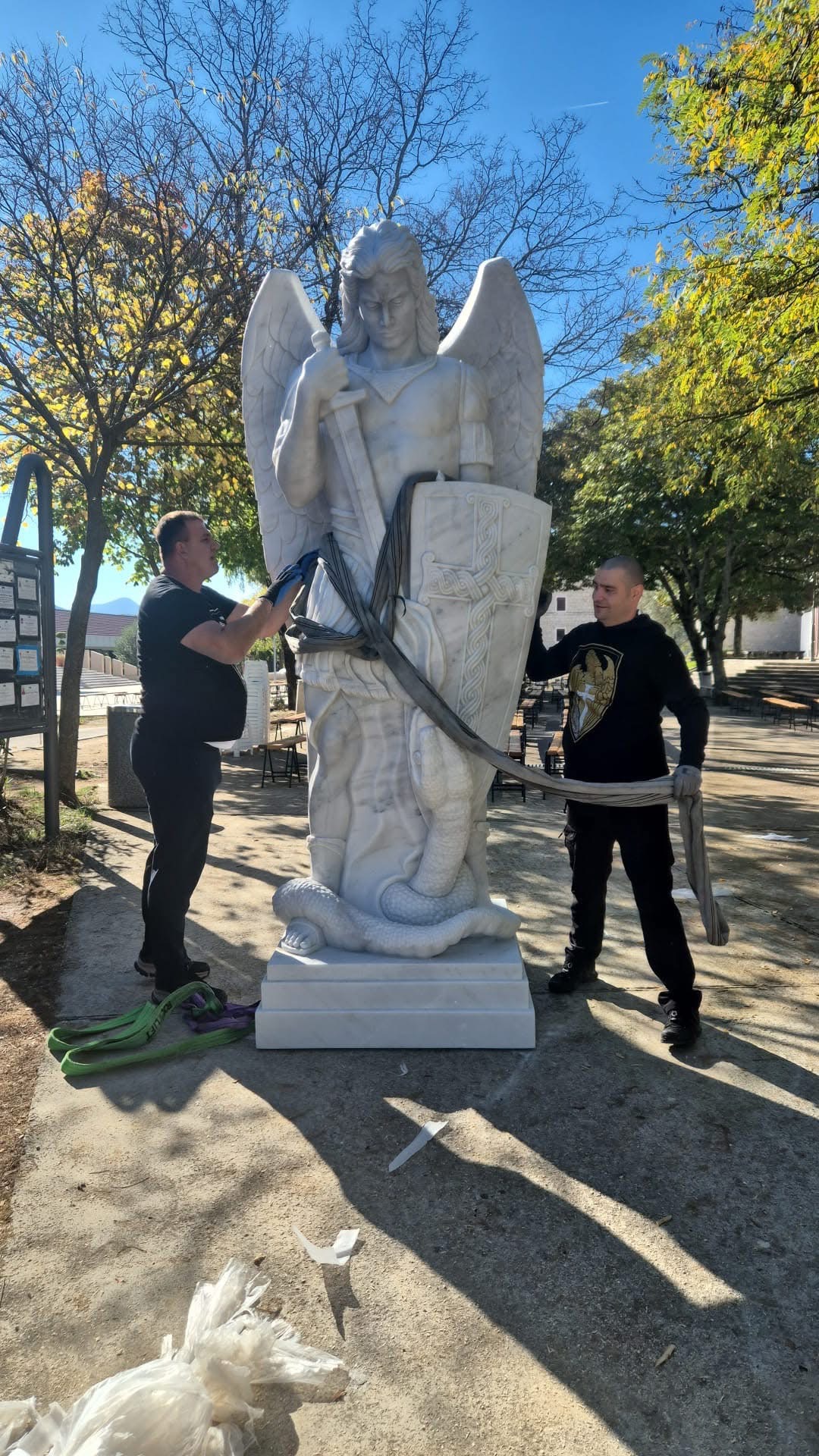 Nakon što su kipovi sv. Mihaela već postavljeni u Križevcu, Murteru i Donjem Muću, danas su u Hercegovinu stigla još četiri monumentalna kipa.
