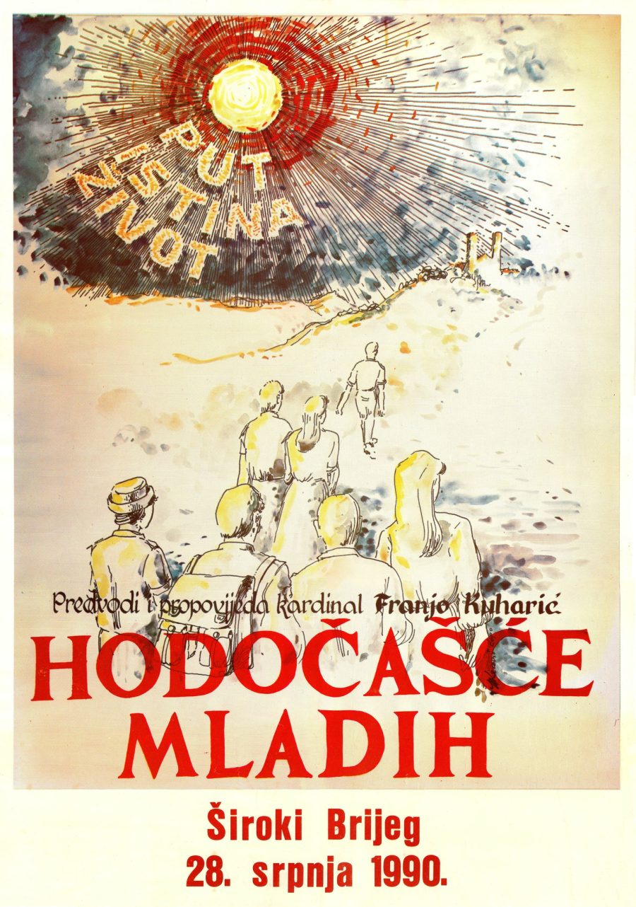 Digitalni arhiv Široki Brijeg je objavio zanimljivu fotografiju i tekst s opisom: Originalni plakat za Hodočašće mladih na Širokom Brijegu od 28. srpnja 1990.