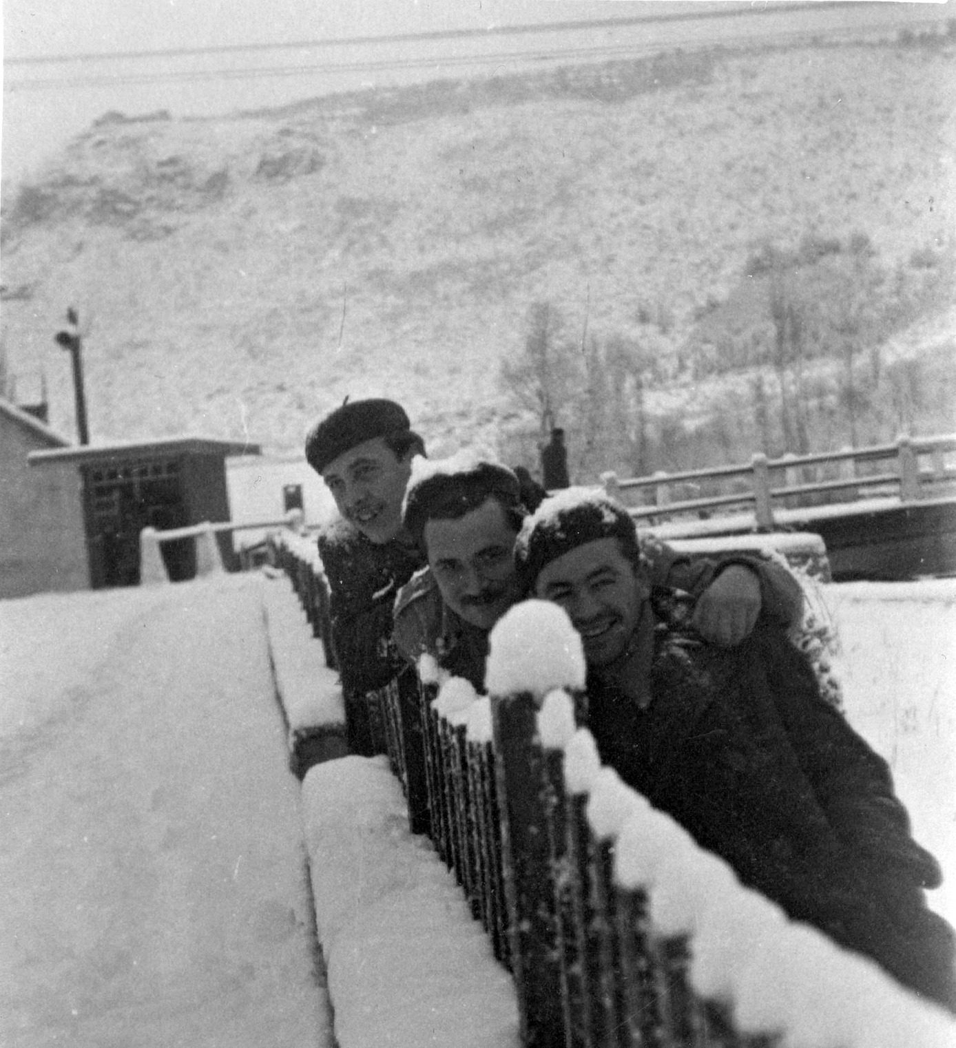 Na fotografiji slijeva nadesno se nalazi Miljenko Perkušić Deva, Mladen Zovko i Ivan Ćorić Ifa. U pozadini most u središtu grada i stari kiosk.