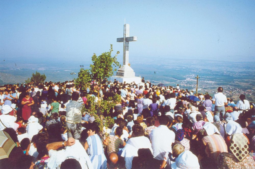 Međugorski župljani doslovce su na svojim ramenima i leđima danima iznosili teške terete – sav materijal za gradnju armirano-betonskog križa (šljunak, cement, željezo, vodu i potrebnu opremu) uz strmi hercegovački kamenjar do vrha brda koje se tada zvalo Šipovac (nazvan po brojnim divljim šipcima koji na njemu rastu) i u samo 52 dana dovršena je izgradnja velikoga betonskog križa. Bila je to doista velika žrtva župljana Međugorja.