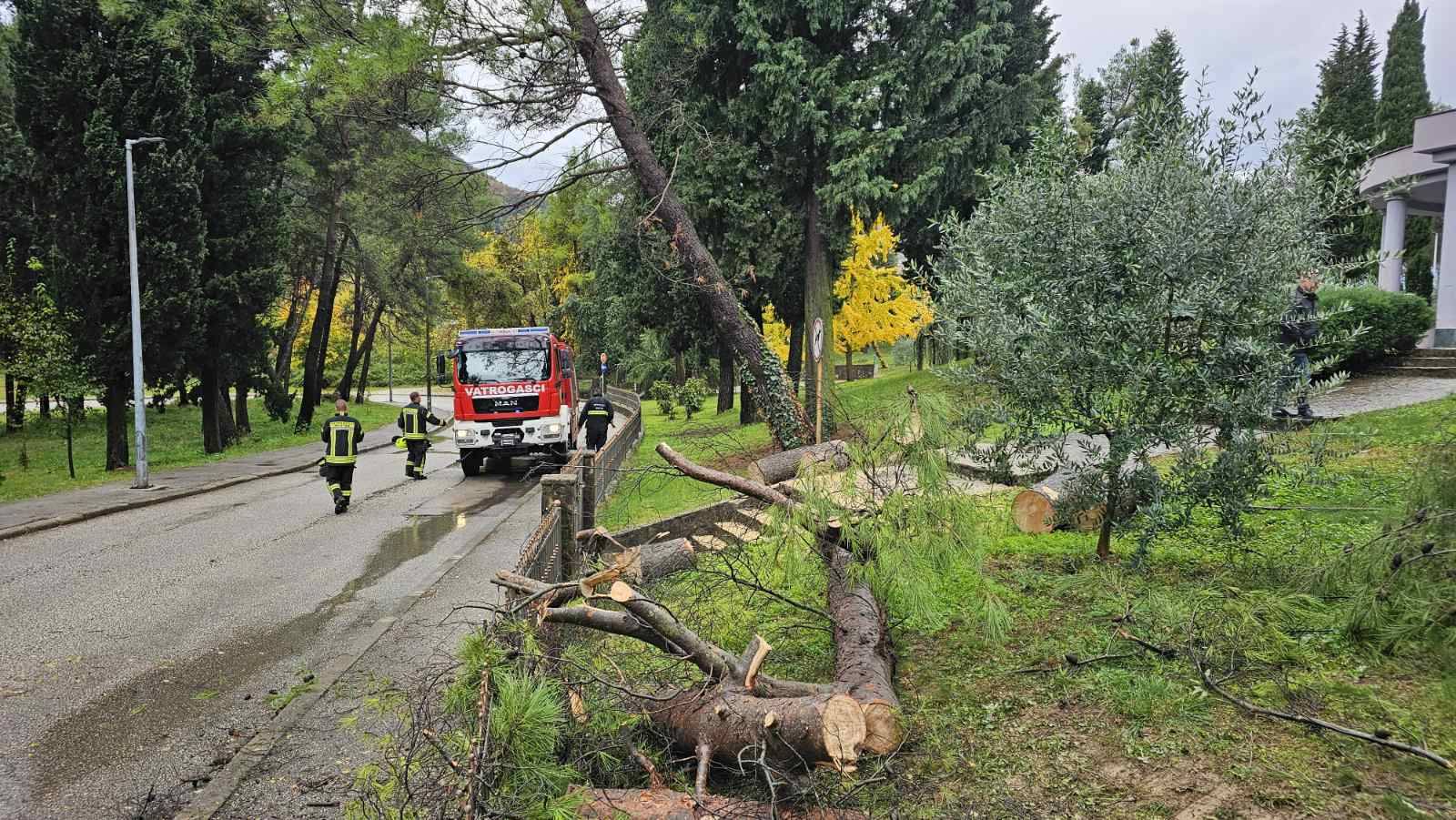 Mostarski vatrogasci danas su intervenirali na Bijelom brijegu, u blizini gradske mrtvačnice, nakon što je došlo do pada velikog stabla. Deblo se srušilo preko ograde i dijelom na cestu, pri čemu je ugrozilo promet i prolaznike.