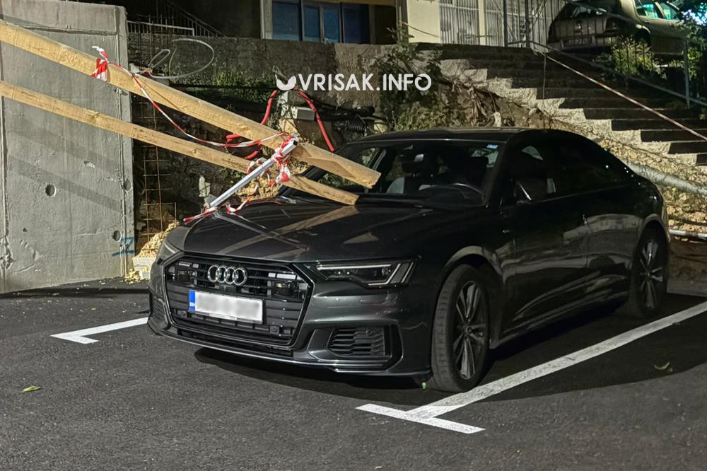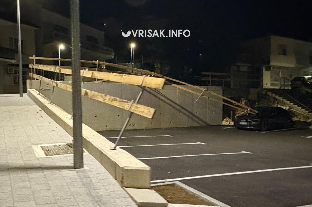 Prema dojavi čitatelja portala Vrisak.info, vjetar je srušio improviziranu zaštitnu ogradu, koja je pala na parkirani automobil marke Audi.