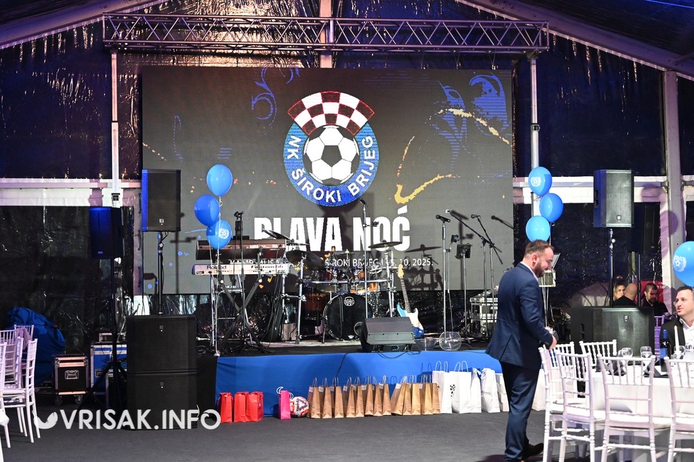 Nogometni klub Široki Brijeg održao je večeras prvu donatorsku večer pod nazivom „Plava noć“, po prvi put na novoj lokaciji – u prepoznatljivom ambijentu Kampa Musa Karačić. Događaj je započeo u 19 sati, a okupio je prijatelje kluba, sponzore, navijače i sve ljubitelje sporta, s ciljem pružanja podrške radu kluba i razvoju Omladinske škole nogometa.