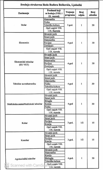 Obavijest o upisu učenika u prve I. razrede Srednje strukovne škole Ruđera Boškovića Ljubuški u školskoj 2020./2021.