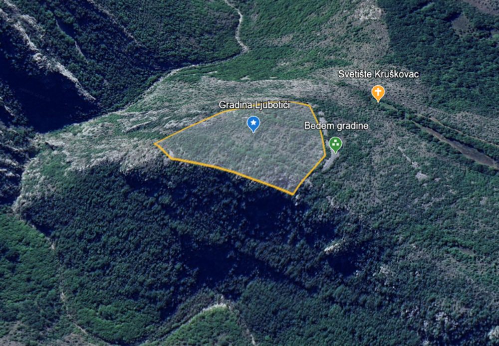 Stotinjak metara iznad Kruškovca krije se jedna od najvećih i najimpresivnijih gradina u zapadnoj Hercegovini, možda i šire. Ova prapovijesna gradina zavedena je u Arheološkom leksikonu Bosne i Hercegovine iz 1988. godine na stranici 297 pod oznakom 24.152 GRADINA, Ljubotići, Lištica.