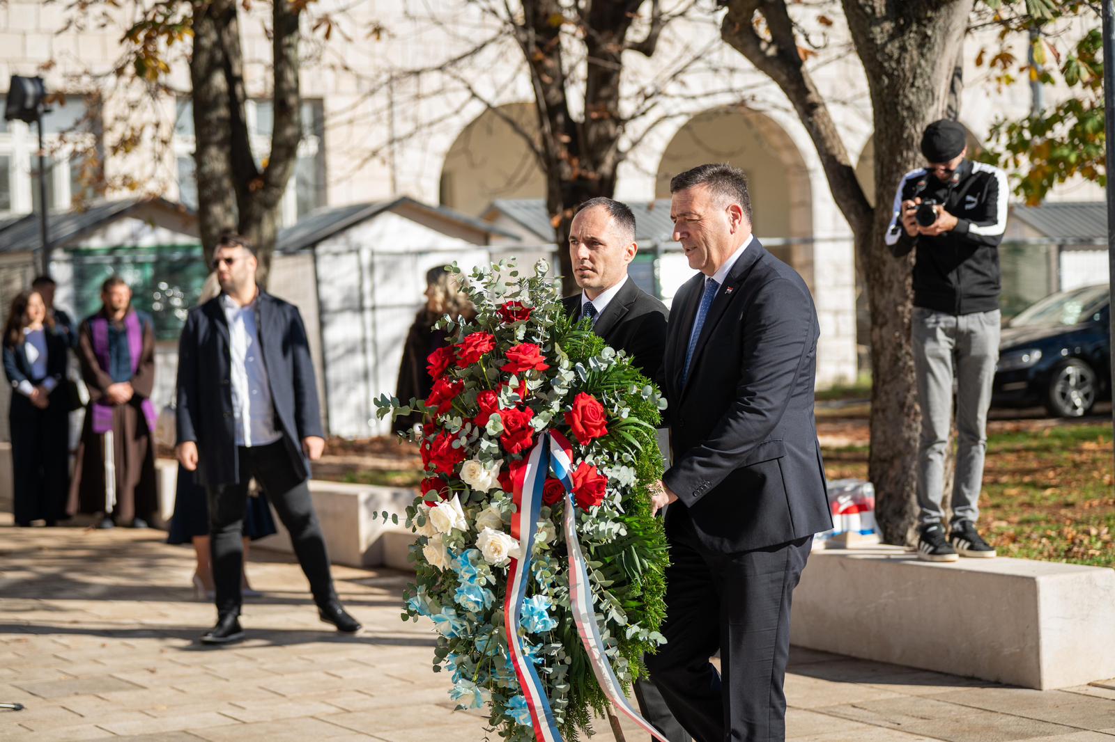 Uz predsjednika Čovića, nazočili su predsjedateljica Vijeća ministara BiH Borjana Krišto, zastupnici u Parlamentarnoj skupštini BiH Darijana Filipović i Predrag Kožul, izaslanik u Domu naroda PS BiH Zdenko Ćosić, zamjenik ministra vanjskih poslova BiH Josip Brkić, zamjenik ministra obrane BiH Slaven Galić, predsjedatelj Doma naroda Parlamenta Federacije BiH Tomislav Martinović, ministrica prometa i komunikacija u Vladi FBiH Andrijana Katić, ministar pravde u Vladi FBiH Vedran Škobić, rektor Sveučilišta u Mostaru Ivo Čolak, predsjednik Kluba Hrvata u Domu naroda Parlamenta Federacije BiH Damir Džeba, izaslanici u Domu naroda Parlamenta Federacije BiH Tomislav Mandić i Ivica Pavković, zastupnice u Zastupničkom domu Parlamenta Federacije BiH Franka Leko, Marija Kikaš i Kristina Šimović, tajnik Ministarstva pravde BiH Željko Bogut, generalni tajnik Vijeća ministara BiH Robert Vidović, zastupnici u Skupštini Županije Zapadnohercegovačke Vedran Kožul, Marko Radić, Miroslav Mitrović i Damir Jurišić, predsjednica Vlade Hercegovačko-neretvanske županije Marija Buhač, župan Dubrovačko-neretvanske županije Blaž Pezo, predstavnica Središnjeg državnog ureda za Hrvate izvan RH Žana Ćorić, ministrica obrazovanja u Vladi ŽZH Daniela Perić, ministar zdravstva, rada i socijalne skrbi u Vladi HNŽ Tomislav Pejić, načelnik Posušja Ante Begić, članovi Predsjedništva HNS-a BiH Zrinko Čuvalo i Miro Grabovac-Titan, zamjenica ravnatelja Federalnog zavoda MIO/PIO Miljana Glamuzina te predsjednica Udruge obitelji poginulih hrvatskih branitelja HVO HB Jasna Zlomislić.