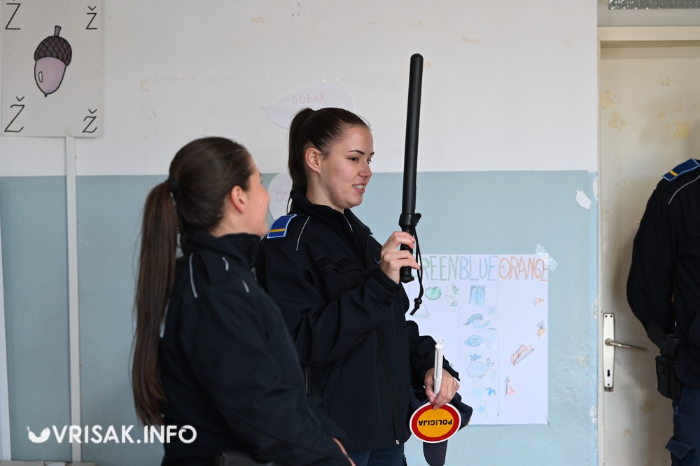 Program je započeo kratkom edukacijom u učionici, gdje su učenici kroz interaktivne prezentacije i razgovor s policijskim službenicima učili o pravilnom prelasku ceste, važnosti reflektirajuće opreme i ponašanju u prometu.