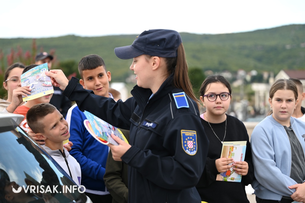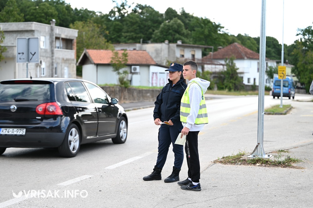 Nakon edukacije, učenici su se zajedno s djelatnicima PU Široki Brijeg uključili u nadzor prometa ispred škole.