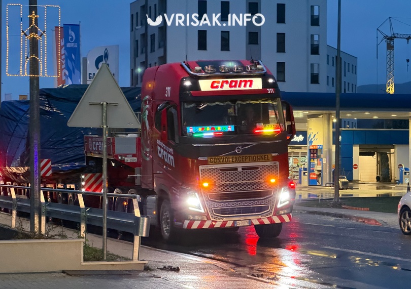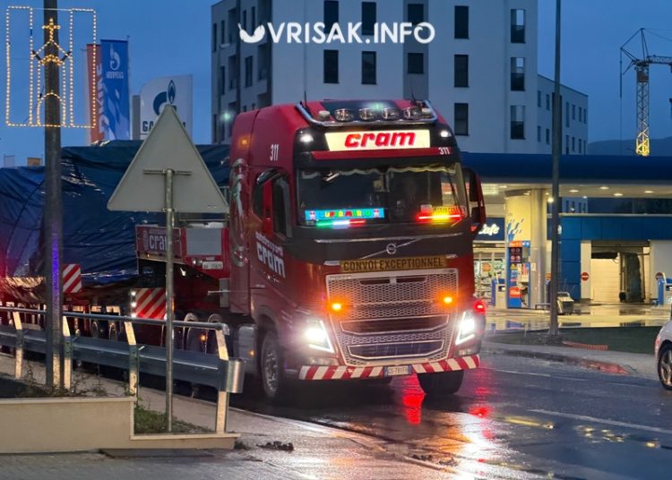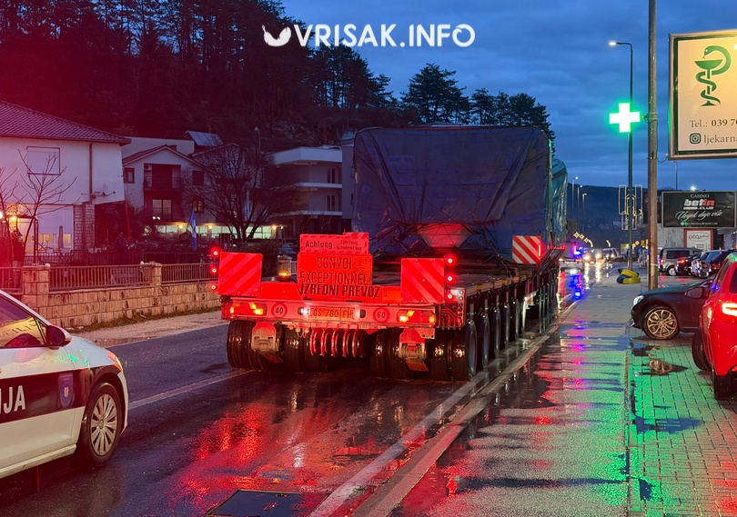 Tegljač s ogromnom prikolicom dovezao je vrijednu opremu, a cijeli transport pratila je tehnička služba koja je organizirala prijevoz i policija koja je regulirala promet kako bi sve proteklo sigurno i sa što manje poteškoća za sve sudionice u prometu.