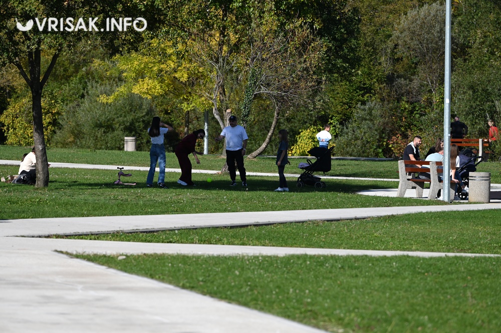 Djeca su veselo trčkarala i igrala se na zelenim površinama, dok su stariji uživali u laganim šetnjama, razgovorima i miru koji pruža prirodni ambijent parka.