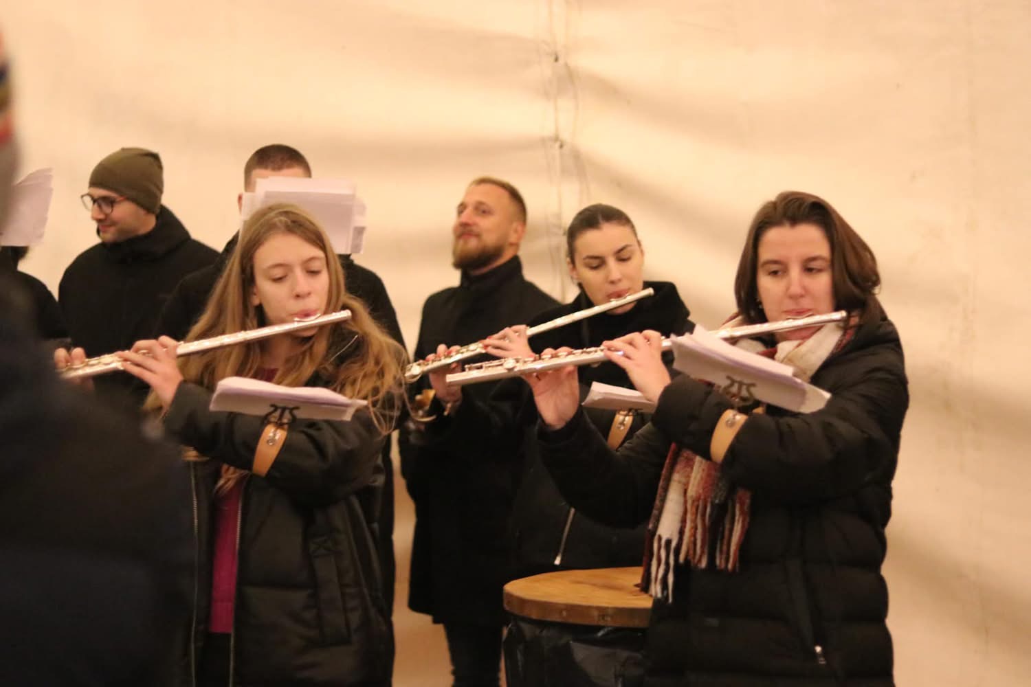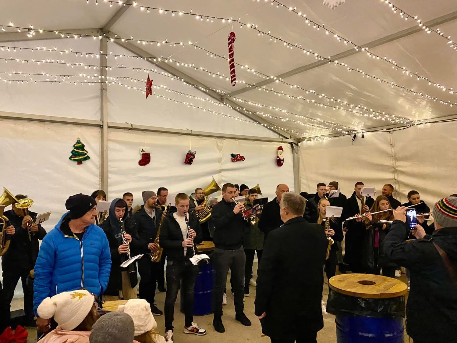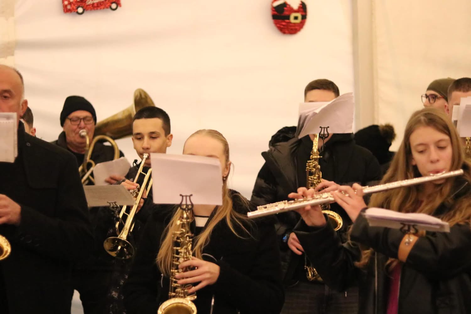 Program u adventskom šatoru na Sajmištu započeo je koncertom Limene glazbe pod ravnanjem maestra Joška Sliškovića, a nakon toga uslijedio je vatromet.