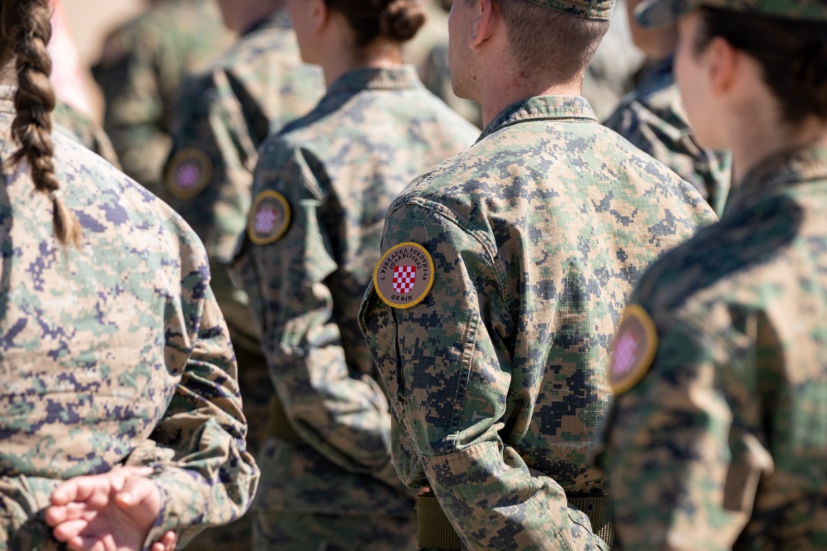 Brigadir Martin Pažin u svom je govoru podsjetio na ratnu ulogu HVO-a kao sigurnog instrumenta hrvatskog opstanka u Bosni i Hercegovini te istaknuo važnost očuvanja naslijeđa, predanosti i odgovornosti među mladim pripadnicima 1. pješačke (gardijske) pukovnije OS BiH.