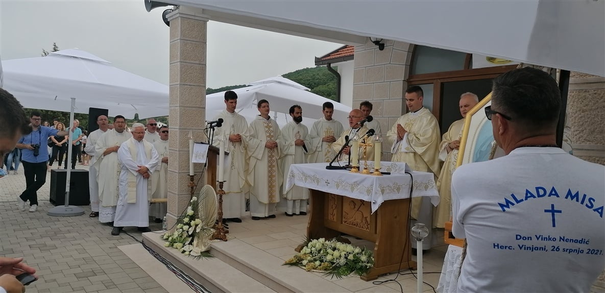 Na kraju misnog slavlja prigodnim se govorom obratio i mladomisnik don Vinko Nenadić: „Gospodine Bože, želim ti sada zahvaliti na daru moga života, na daru svećeničkog poziva. Hvala ti na milostima koje si mi dao, i na križu po kojem si nas otkupio. Neka tvoj križ bude snaga moga svećeničkog djelovanja i poslanja. Gospodine hvala Ti!“. Don Vinko se zahvalio i svojoj obitelji koja mu je bila podrška od početka svećeničke formacije i župniku don Joki Blaževiću koji ga je pratio od krštenja do današnjeg dana. Također mu je uputio i iskrene čestitke povodom 40. obljetnice mlade mise te zaželio da ostane Kristov svećenik kao i do sada, koji je poslan narodu, blizak s narodom, a opet koji u svakom svom činu vidi Božju volju i posvećenje. Zahvalio je i svojim Vinjančankama i Vinjančanima, koji su bili podrška u njegovoj formaciji, životu i poslanju od Boga, duhovniku Kajiniću, Mostarsko-duvanjskoj i Trebinjsko-mrkanskoj biskupiji, biskupu Periću, biskupu Paliću, župama Dračevo i Čapljina te župnicima i mentorima don Vinku Ragužu i don Draganu Filipoviću, sjemeništima, profesorima i odgojiteljima te svima koju su došli uveličati misno slavlje.