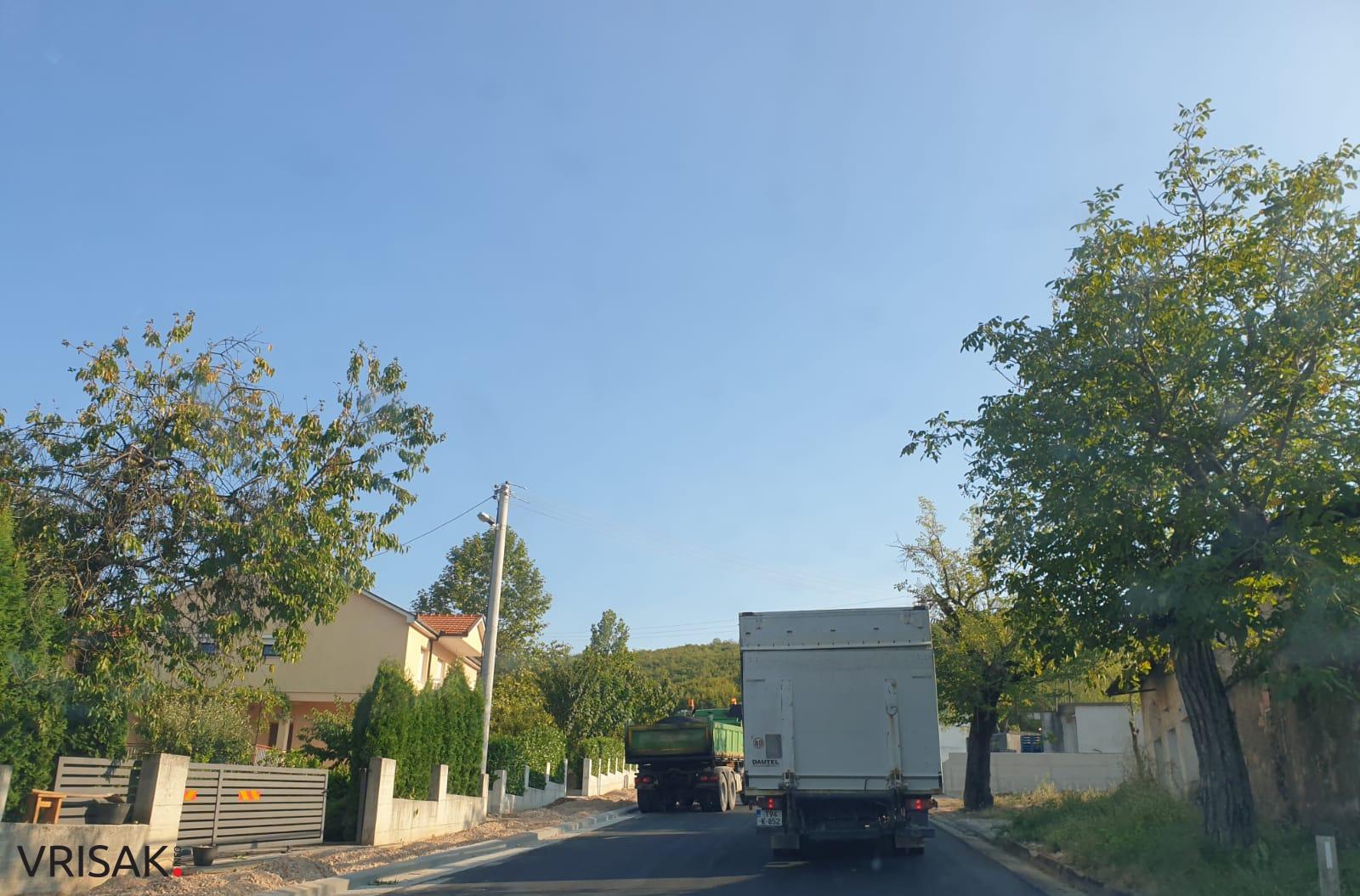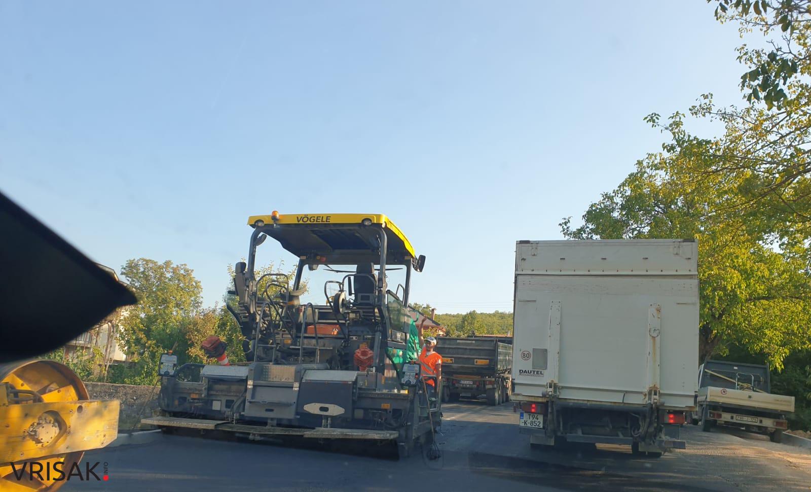 Navlači se novi asfalt. Istovremeno se radi na izgradnji trotoara za pješake.