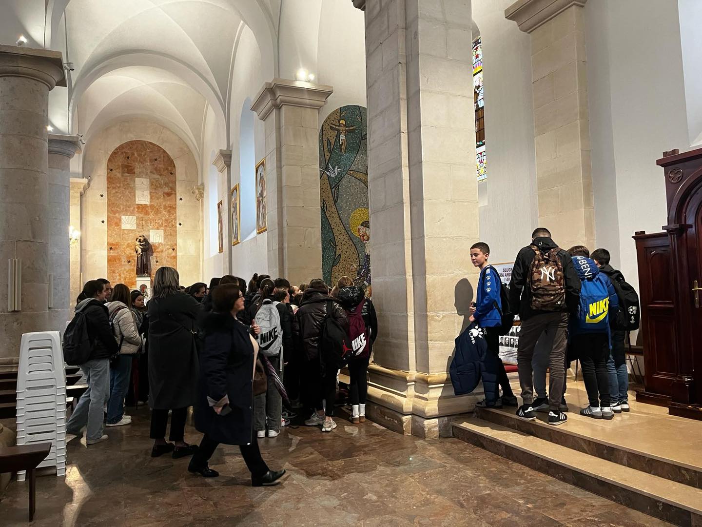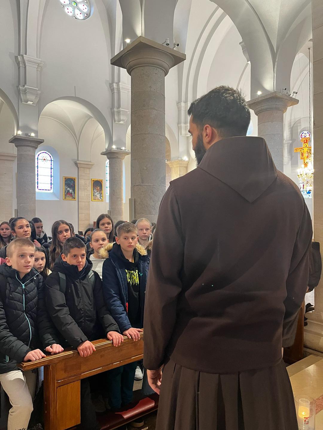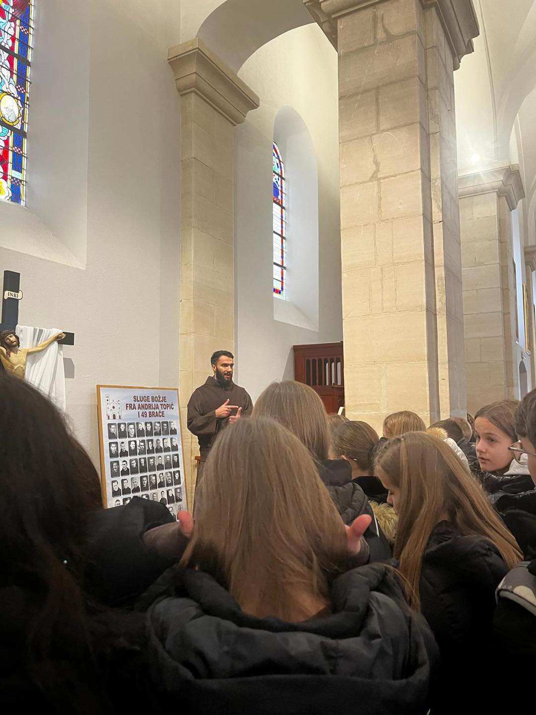 Dočekao ih je fra Željko Tomić, koji im je govorio o povijesti crkve, njezinoj gradnji te o tragičnim događajima iz ratne veljače.