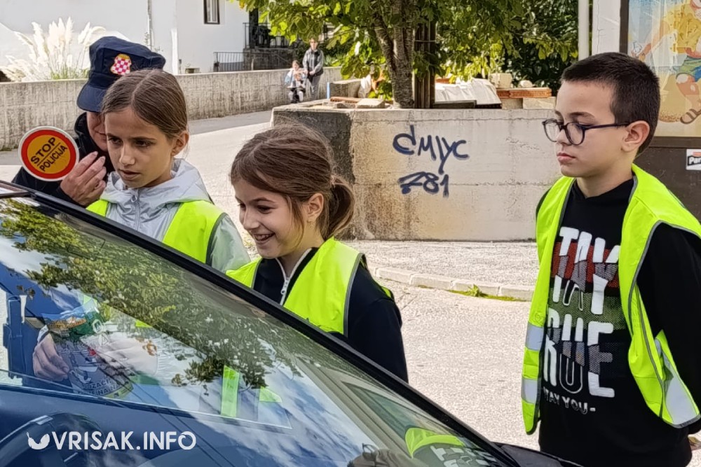 Nakon edukacije, učenici su se zajedno s djelatnicima PU Široki Brijeg uključili u nadzor prometa ispred škole.