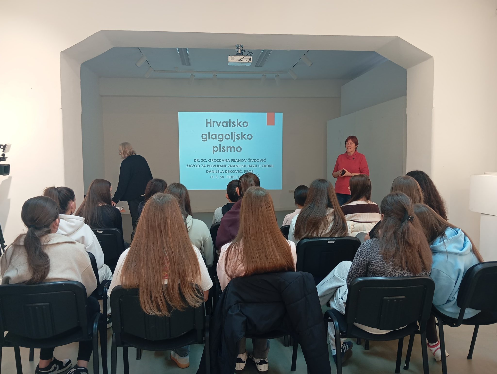 Cilj radionica je bio upoznati polaznike s poviješću glagoljice, osposobiti ih za prepoznavanje i pisanje osnovnih znakova uglate glagoljice te potaknuti kreativno izražavanje kroz umjetnički rad. Voditelji radionica su dr. sc. Grozdana Franov Živković, dr. sc. Darko Dugandžić i Danijela Deković.