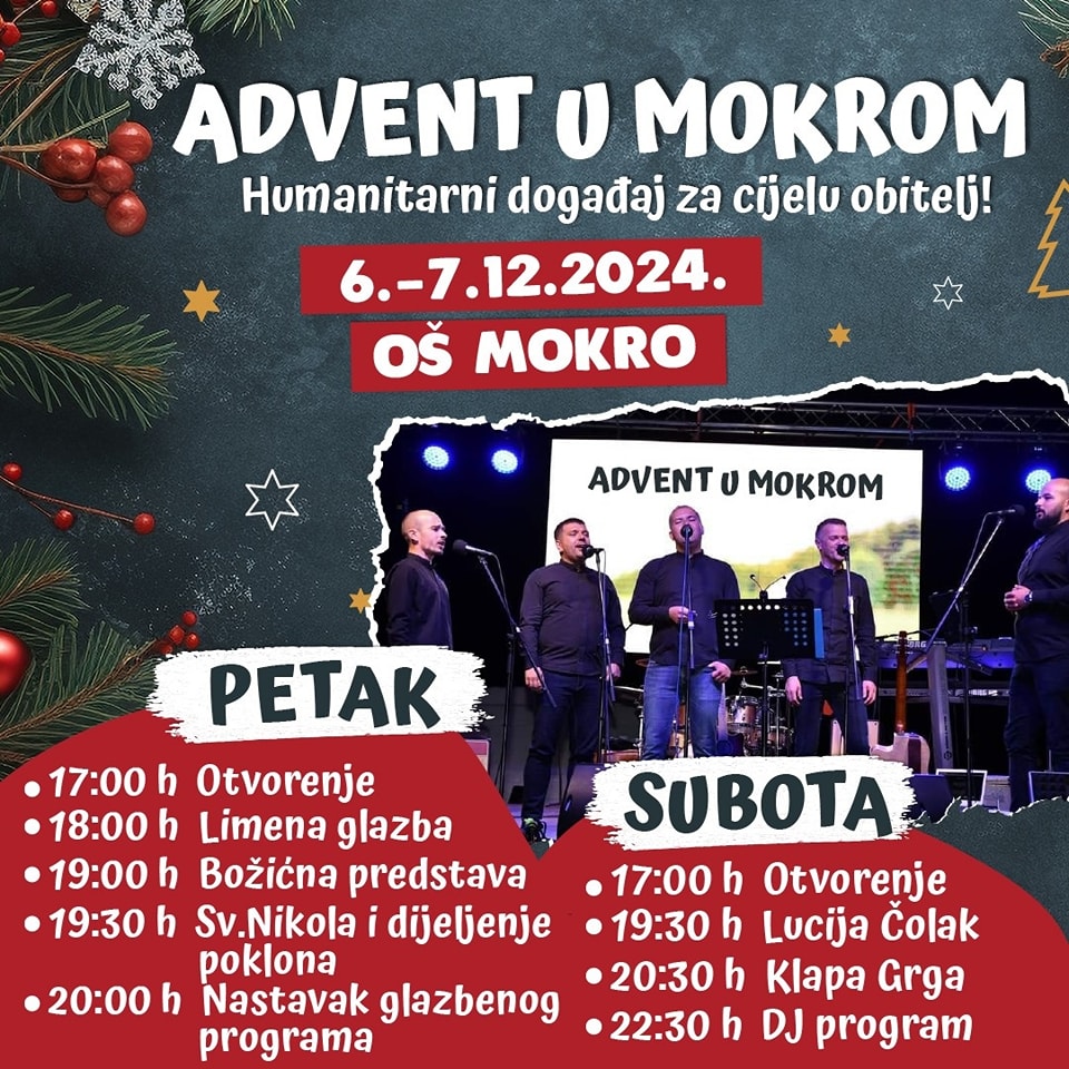 Udruga LOM i Vitko Foundation, uz podršku mještana, ove godine organiziraju humanitarni Advent u Mokrom kod Širokoga Brijega 6. i 7. prosinca 2024. godine.