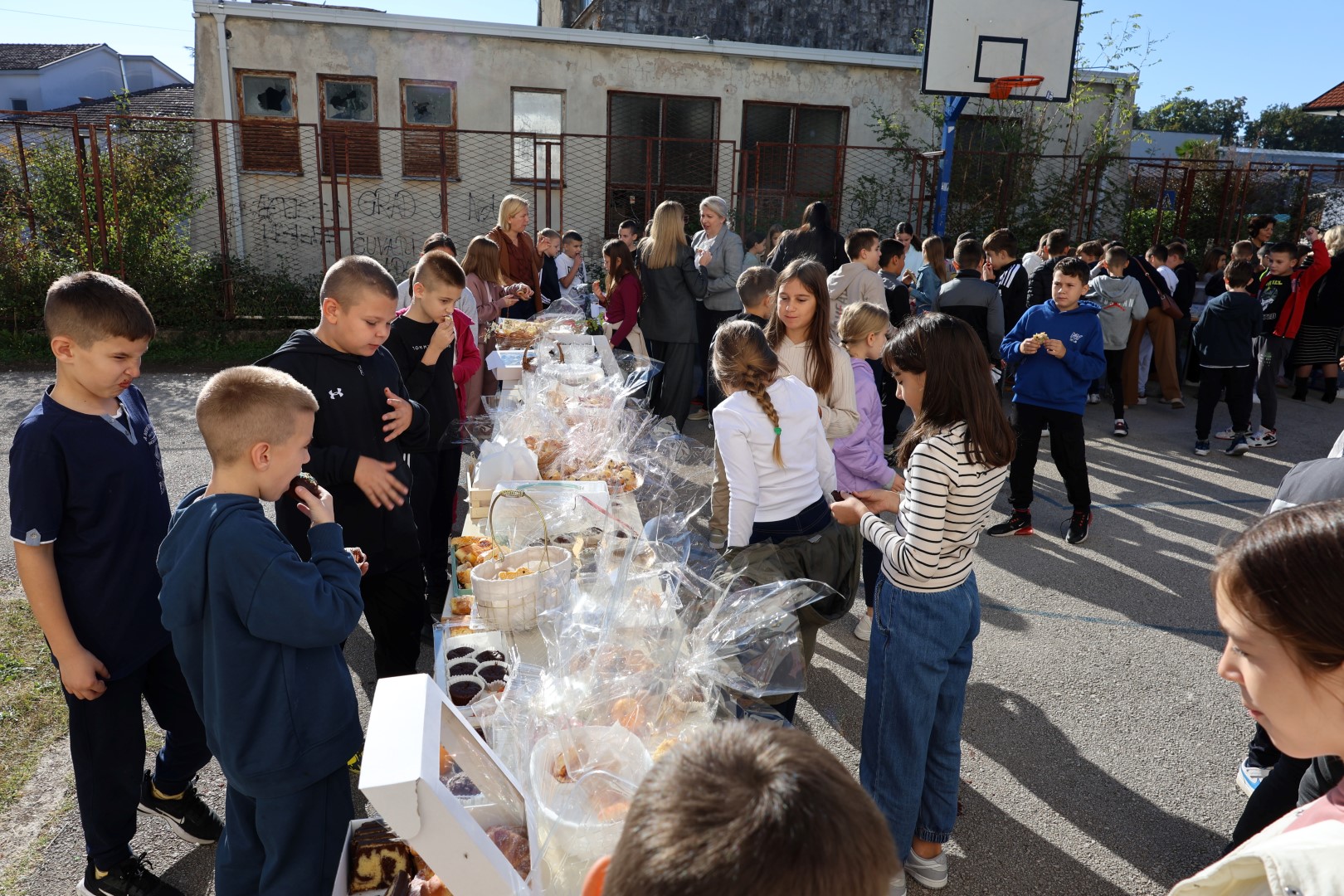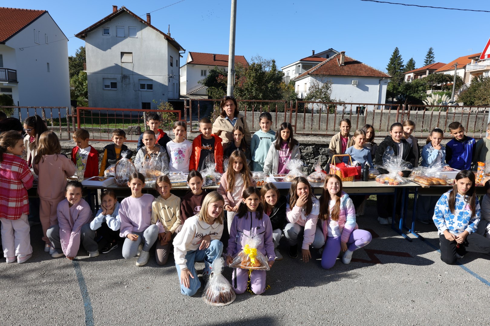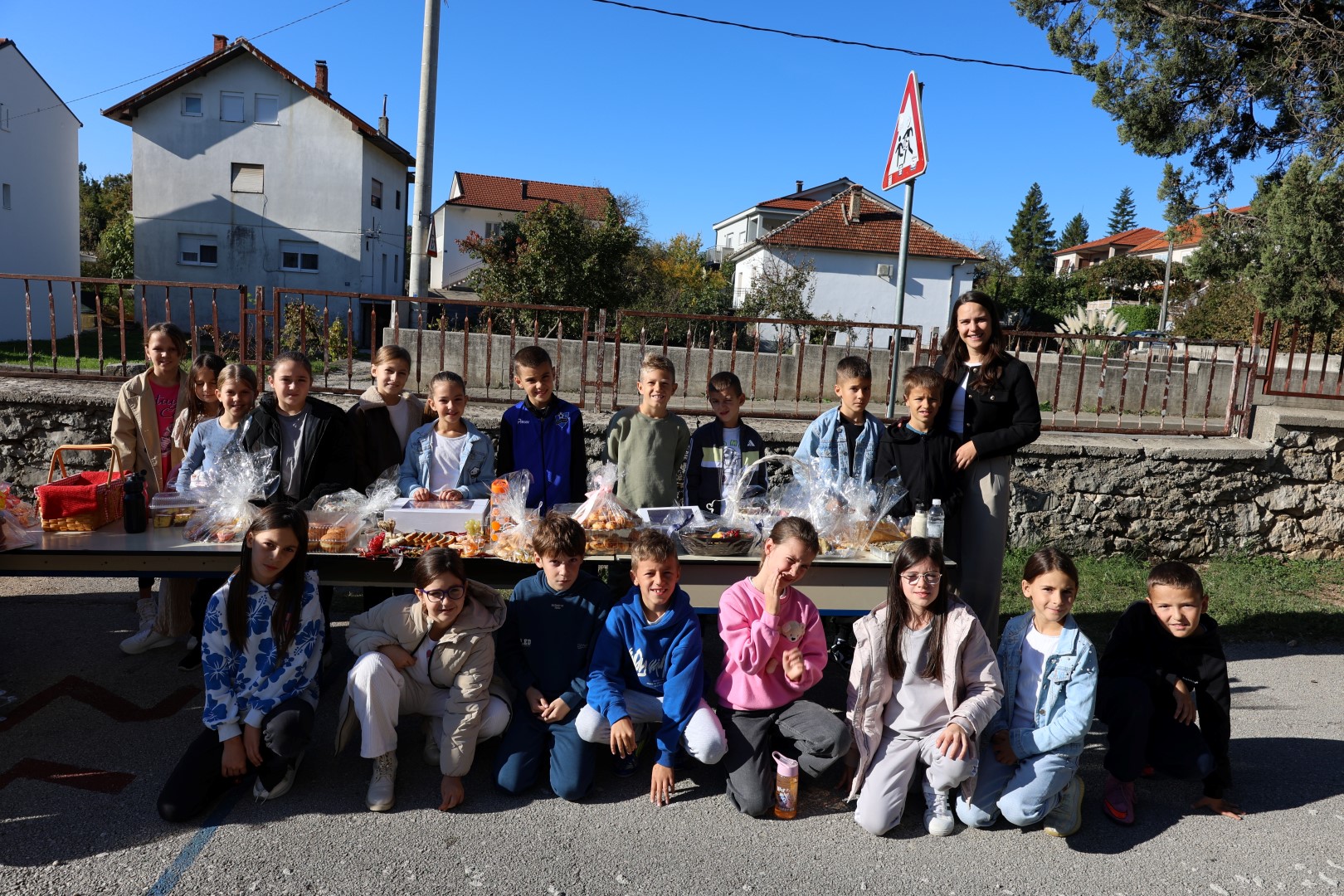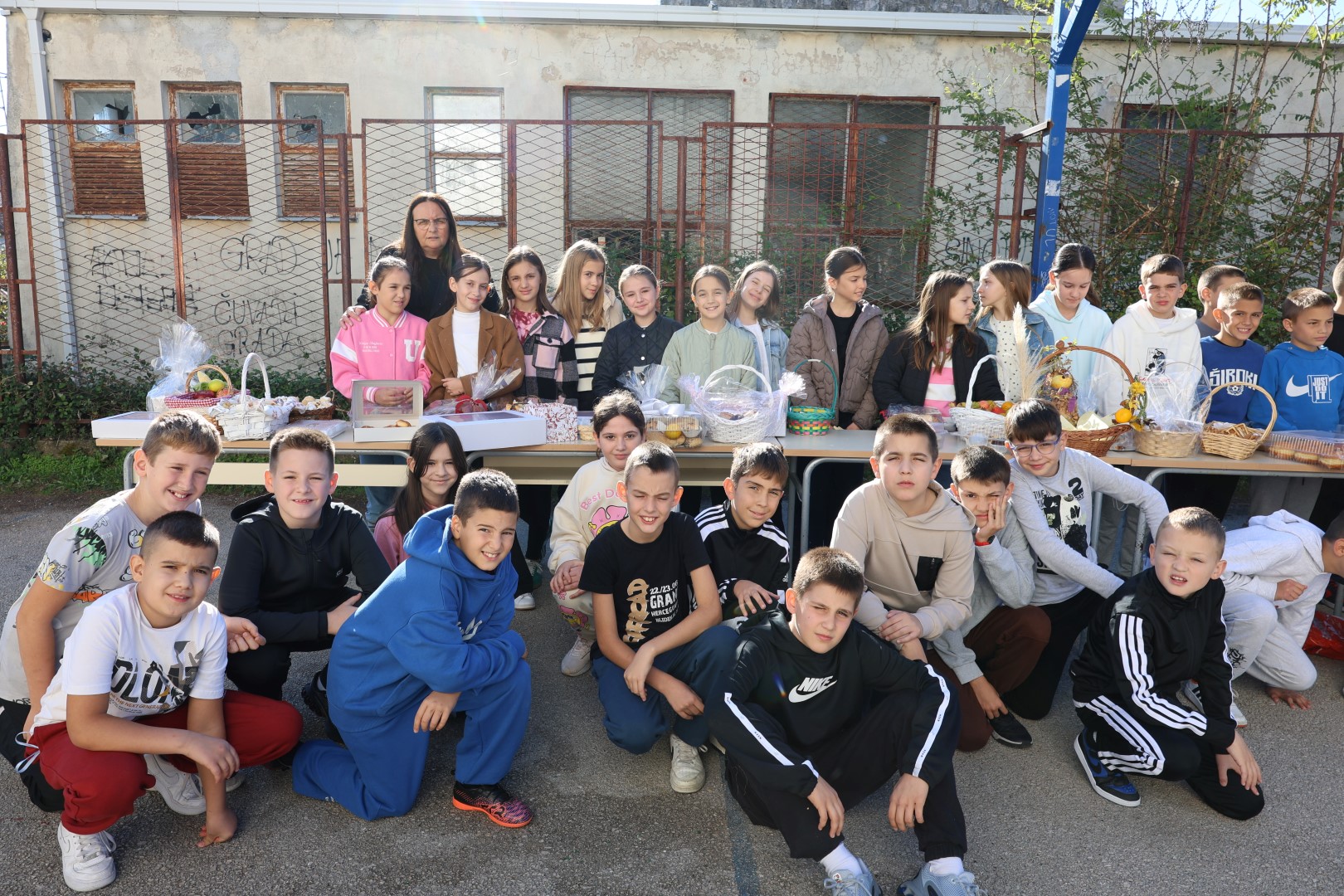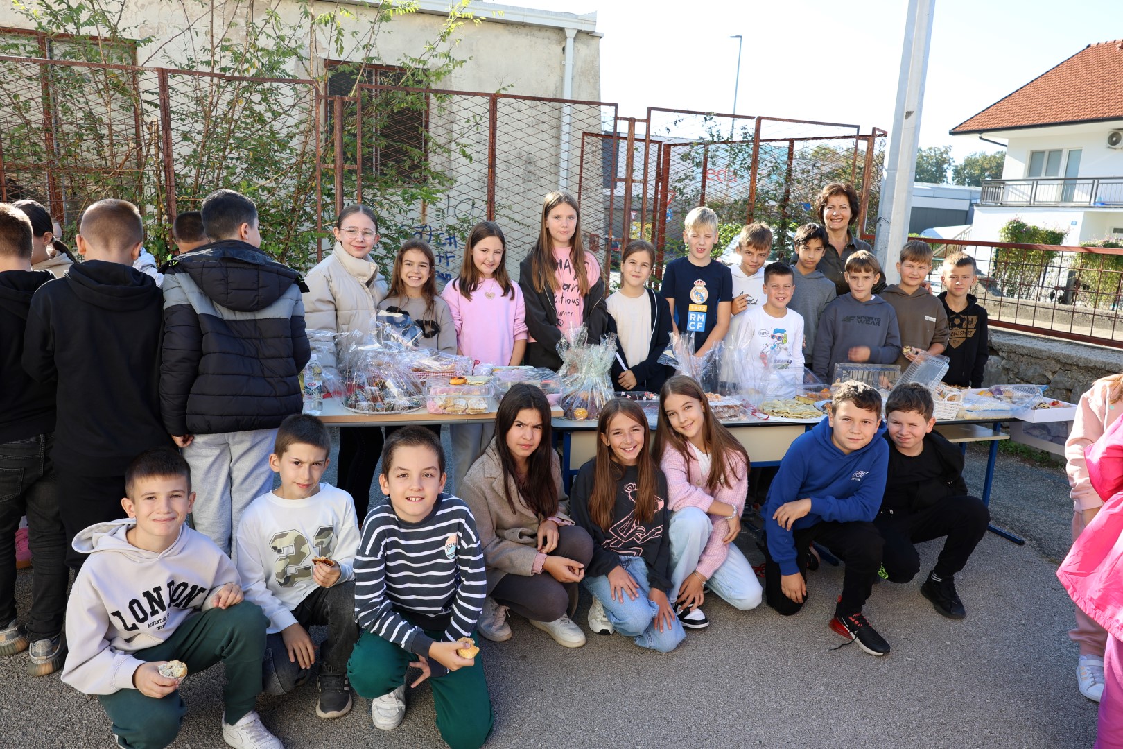 Učiteljice su marljivo ukrasile školu plodovima jeseni, a spremačice su se pobrinule da svi priređeni proizvodi budu lijepo posloženi na stolovima, postavljenim na školskom igralištu.