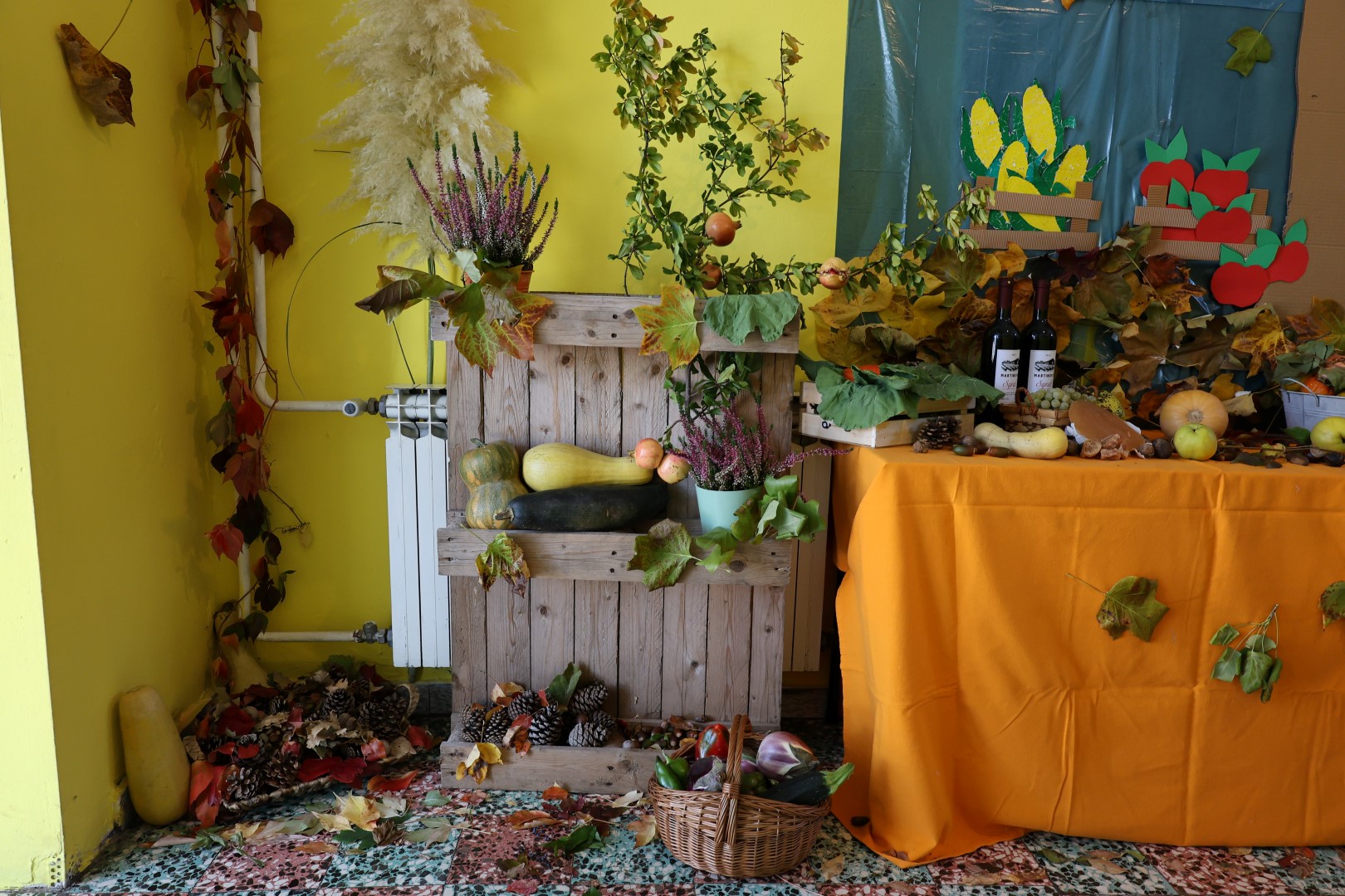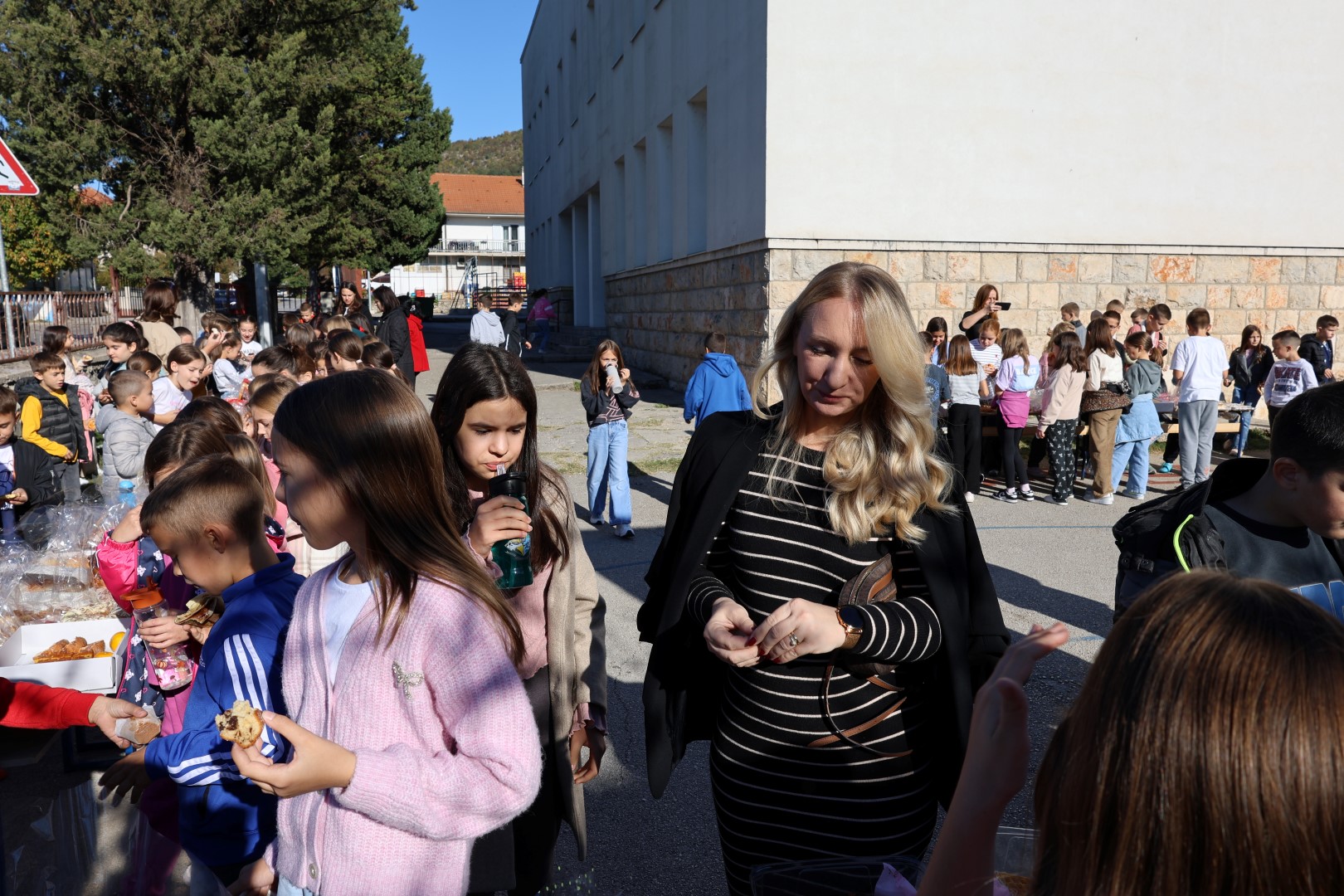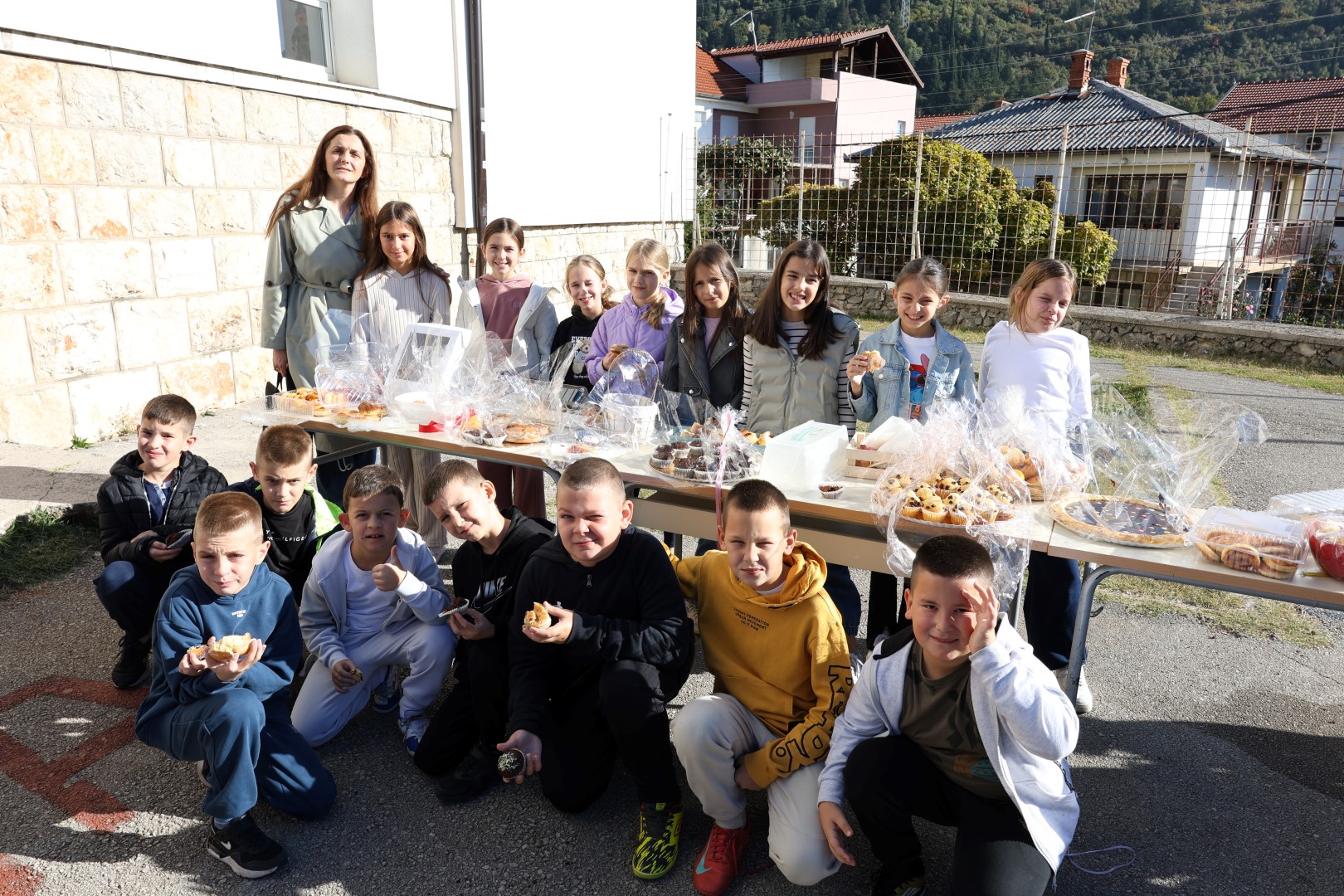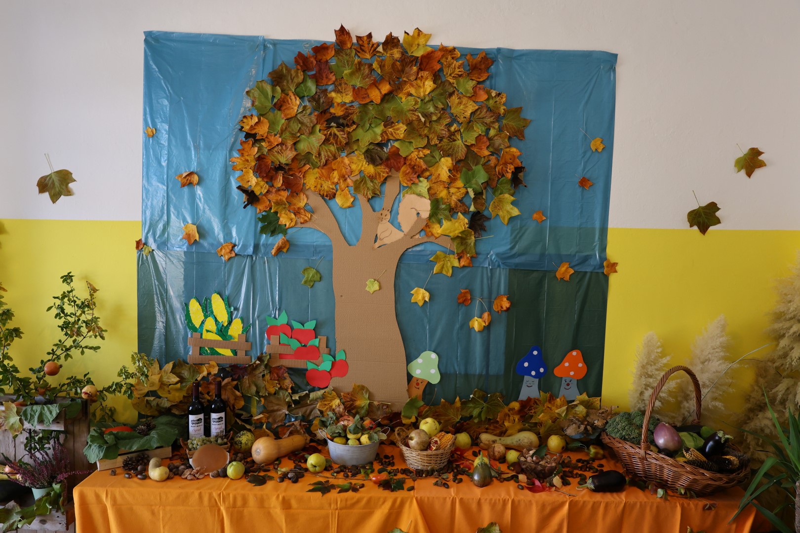 Učiteljice su marljivo ukrasile školu plodovima jeseni, a spremačice su se pobrinule da svi priređeni proizvodi budu lijepo posloženi na stolovima, postavljenim na školskom igralištu.