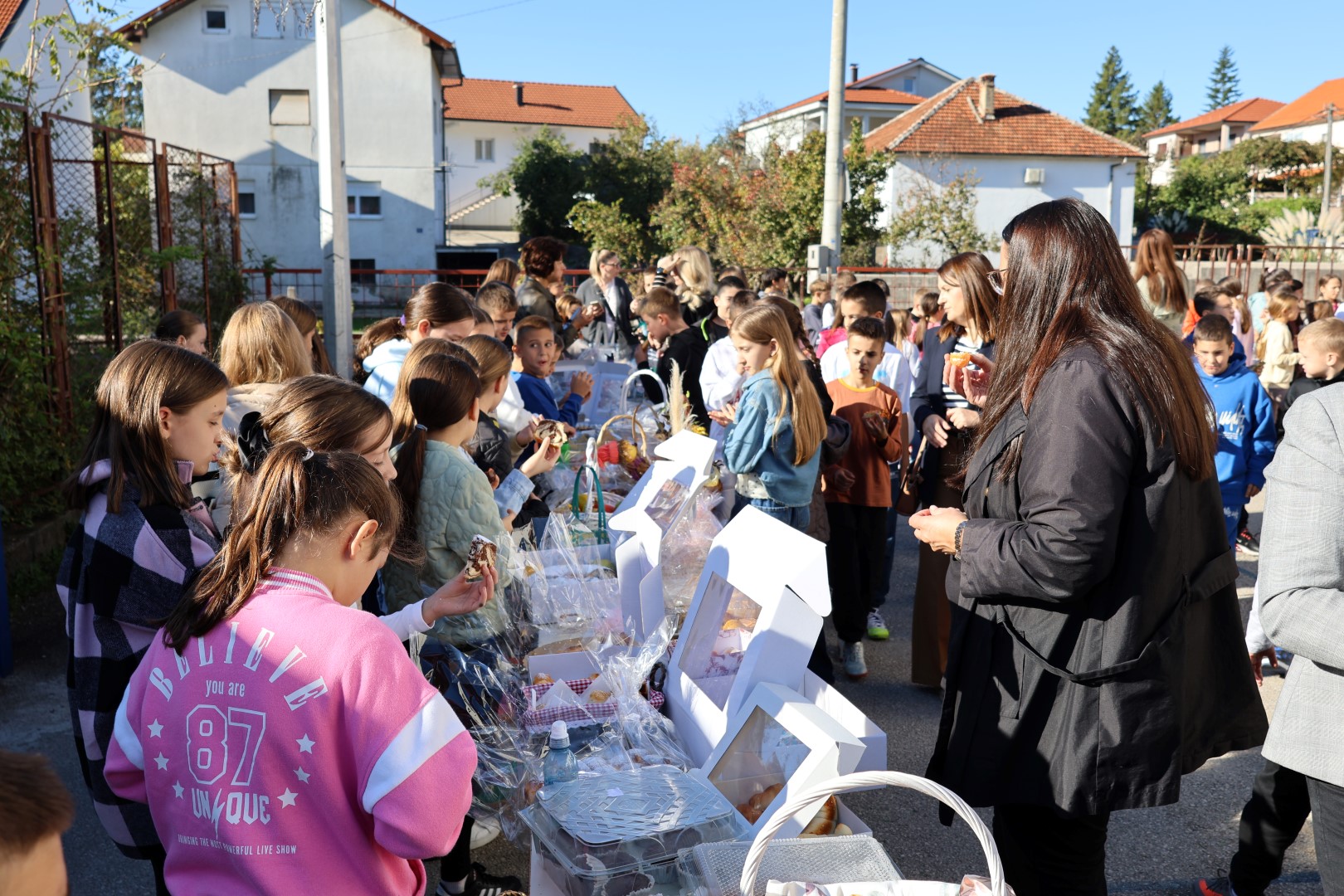 U prisutnosti ravnateljice, učiteljica i vjeroučiteljice, školsko dvorište ispunilo se jesenskim bojama i mirisima svježe pečenog kruha. Djeca i roditelji, s puno ljubavi, pripremili su raznovrsna jela, među kojima su se našli domaći kruh, peciva, kolači i pite, ali i sezonsko voće koje je odisalo bogatstvom jeseni. Domaće delicije i plodovi koje su donijeli podsjećaju na obitelj i zajedništvo.