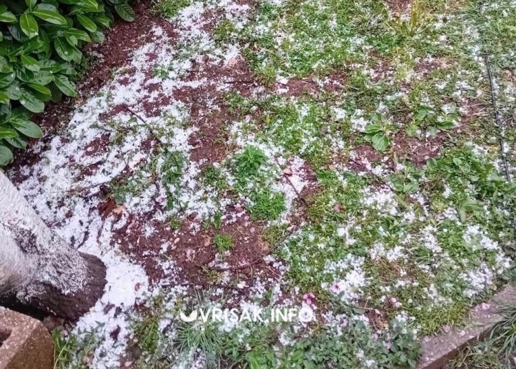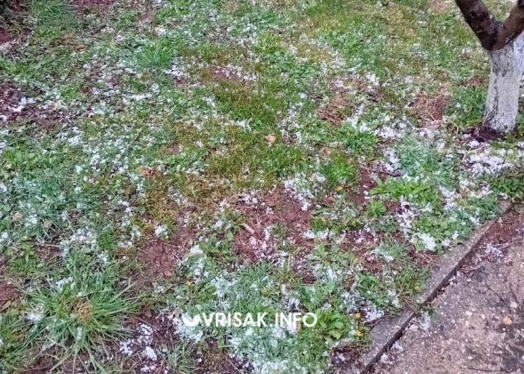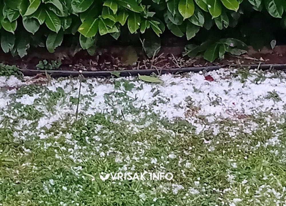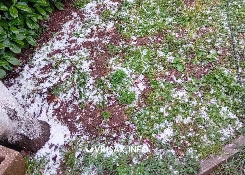 Fotografije koje je čitatelj dostavio portalu Vrisak.info svjedoče o značajnim količinama krupe koje su u kratkom vremenu prekrile tlo.