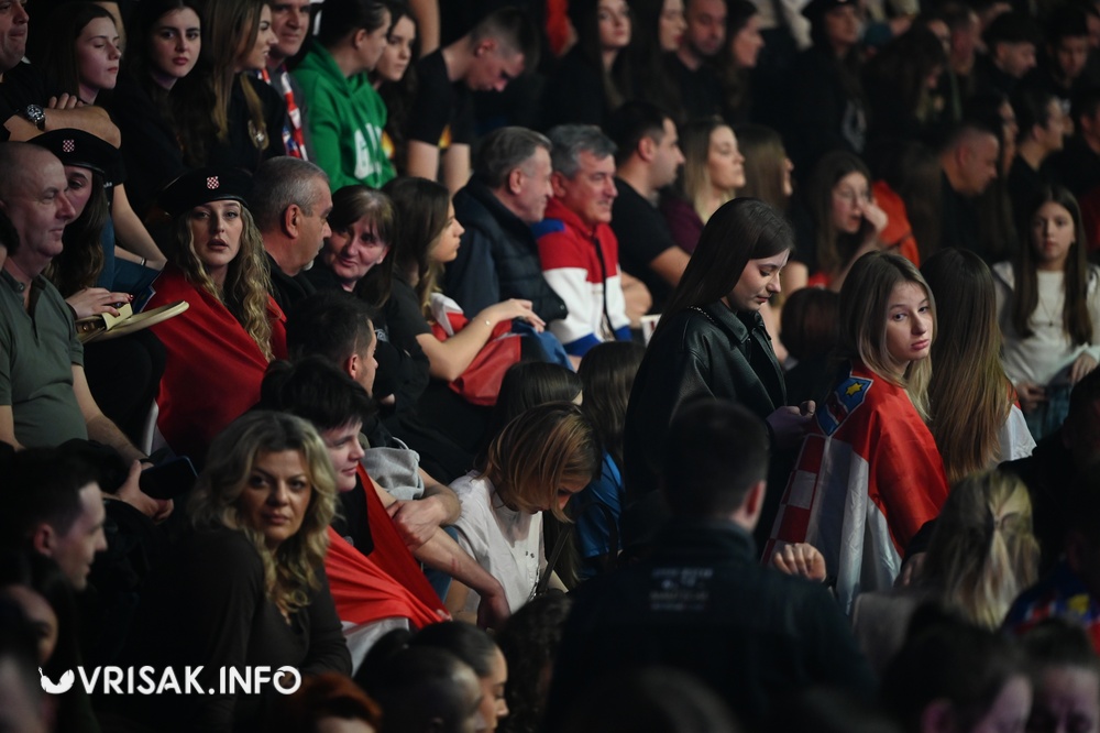 Prostor ispred dvorane pretvoren je u pravo okupljalište emocija i energije, gdje su se satima prije početka pjevali poznati refreni, susretali prijatelji i stvarala atmosfera kakva se rijetko viđa.