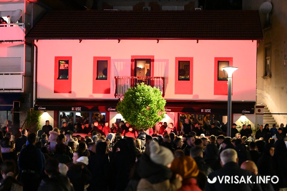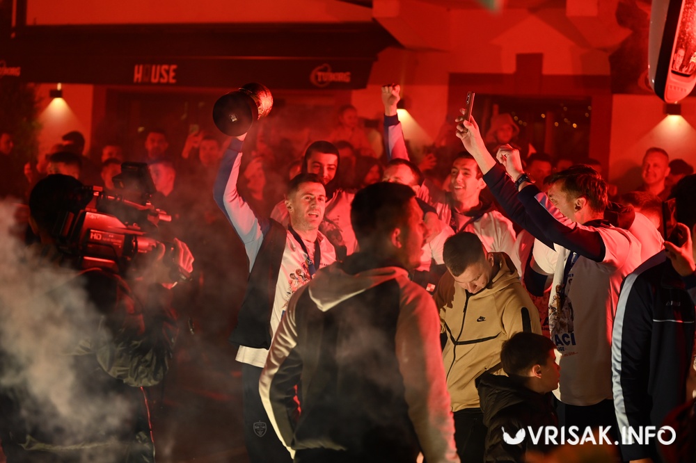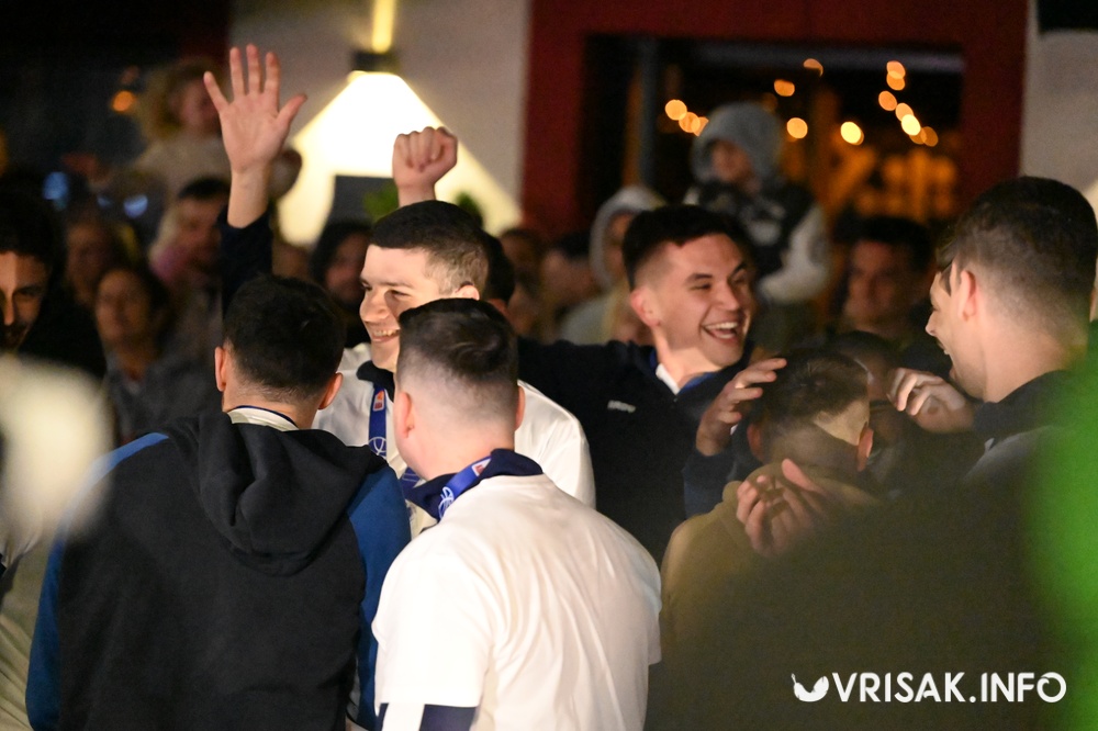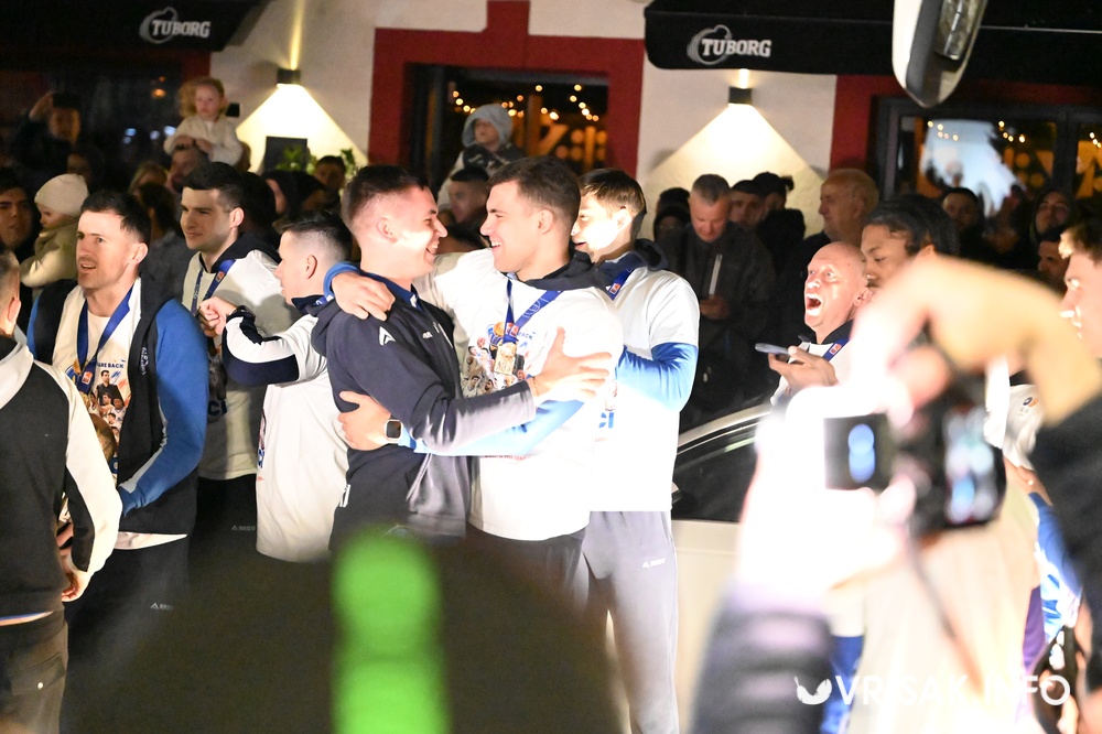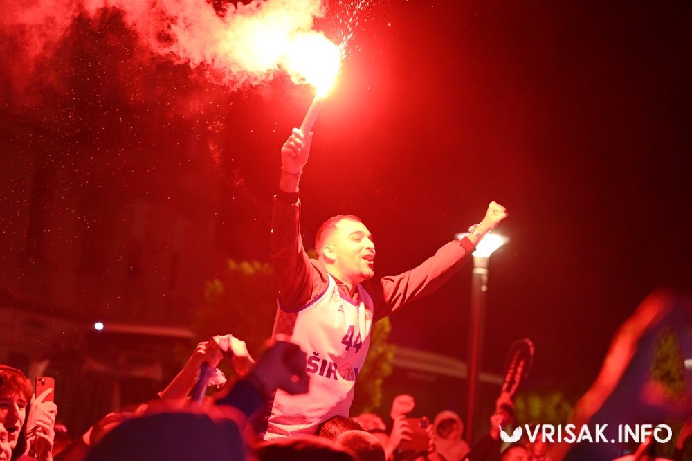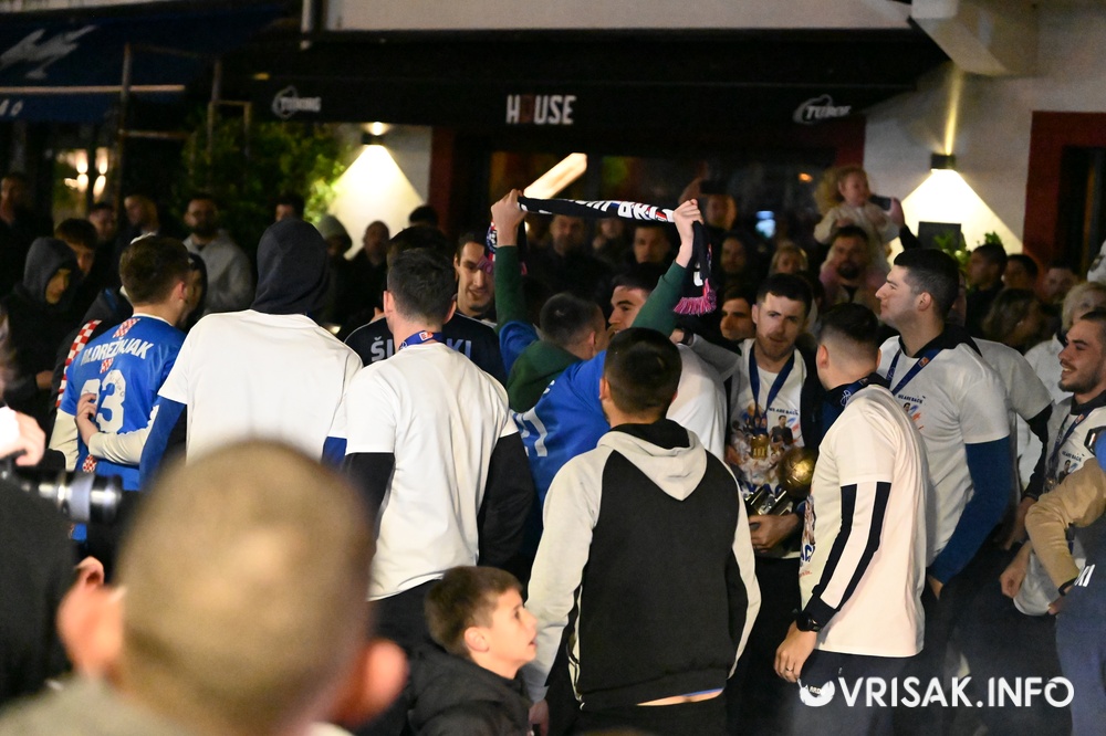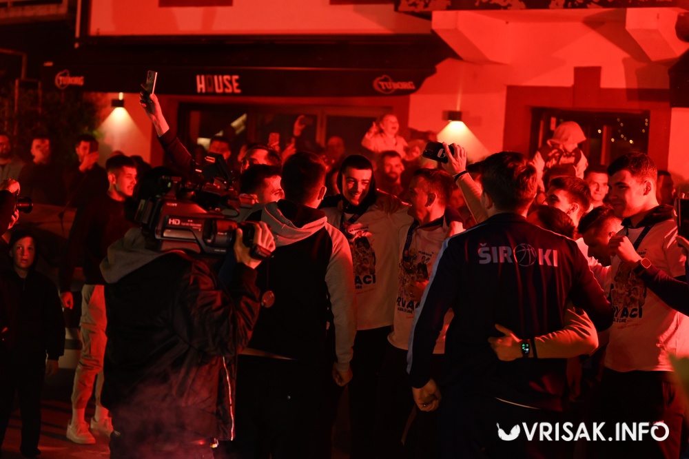 Okupljeni su ih pozdravili ovacijama, a slavlje je nastavljeno u centru grada uz poruku koja je već ranije odzvanjala među navijačima: „Nek’ Široki gori!“