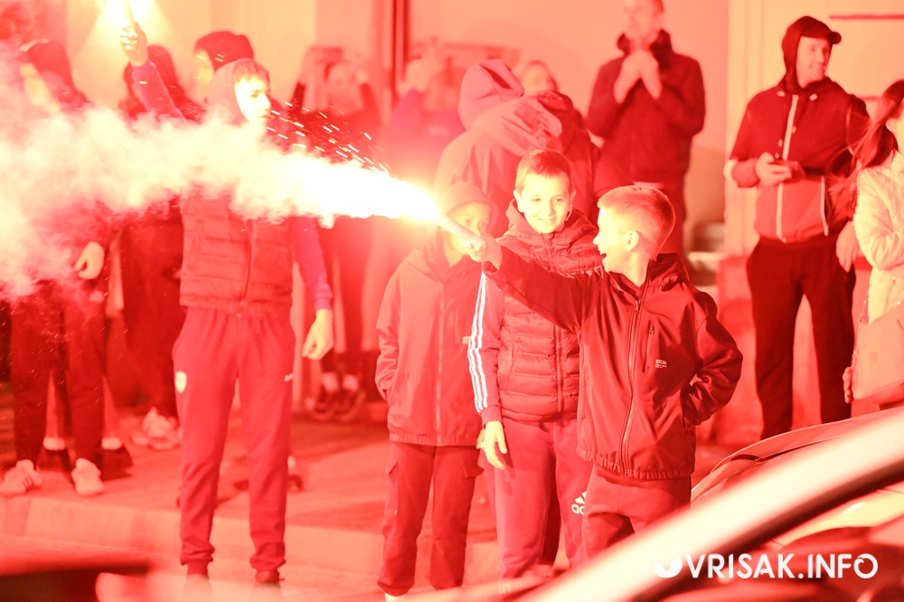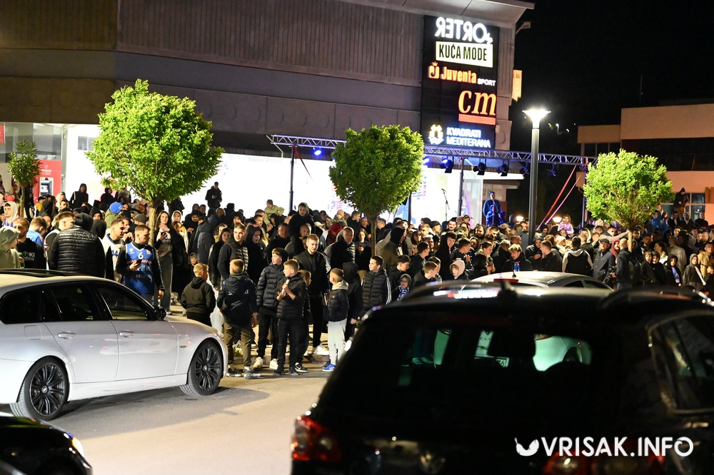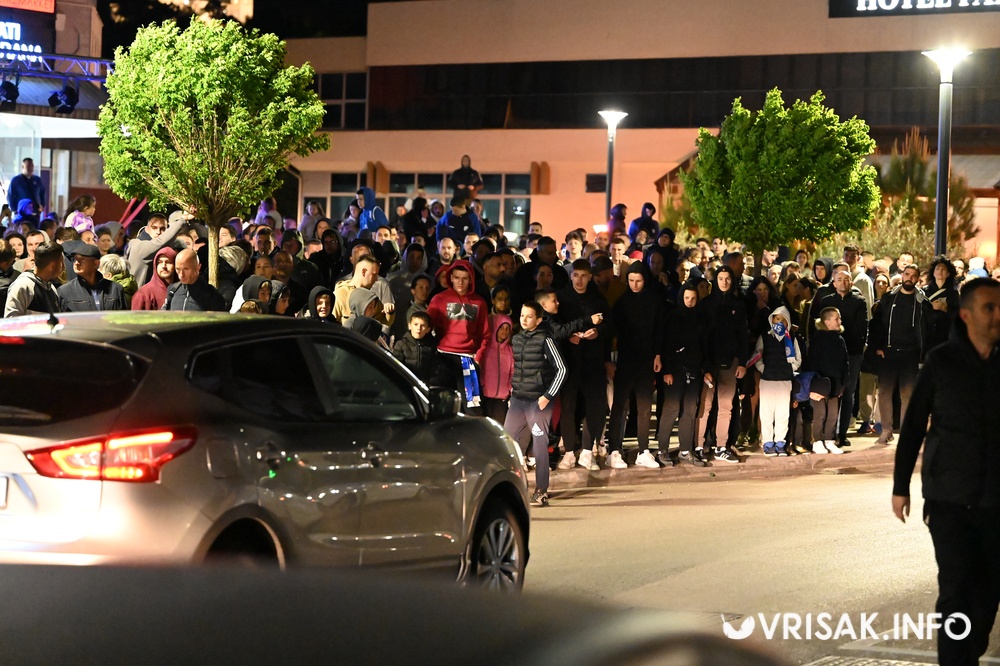 Posebno emotivan trenutak dogodio se ranije, kada je dvadesetak najvjernijih navijača u Pologu dočekalo igrače u vožnji autobusom. Uz bakljadu su napravili „špalir“ svojim prvacima, nakon čega su ih u koloni automobila pratili sve do središta Širokog Brijega, gdje je nastavljen veliki doček.