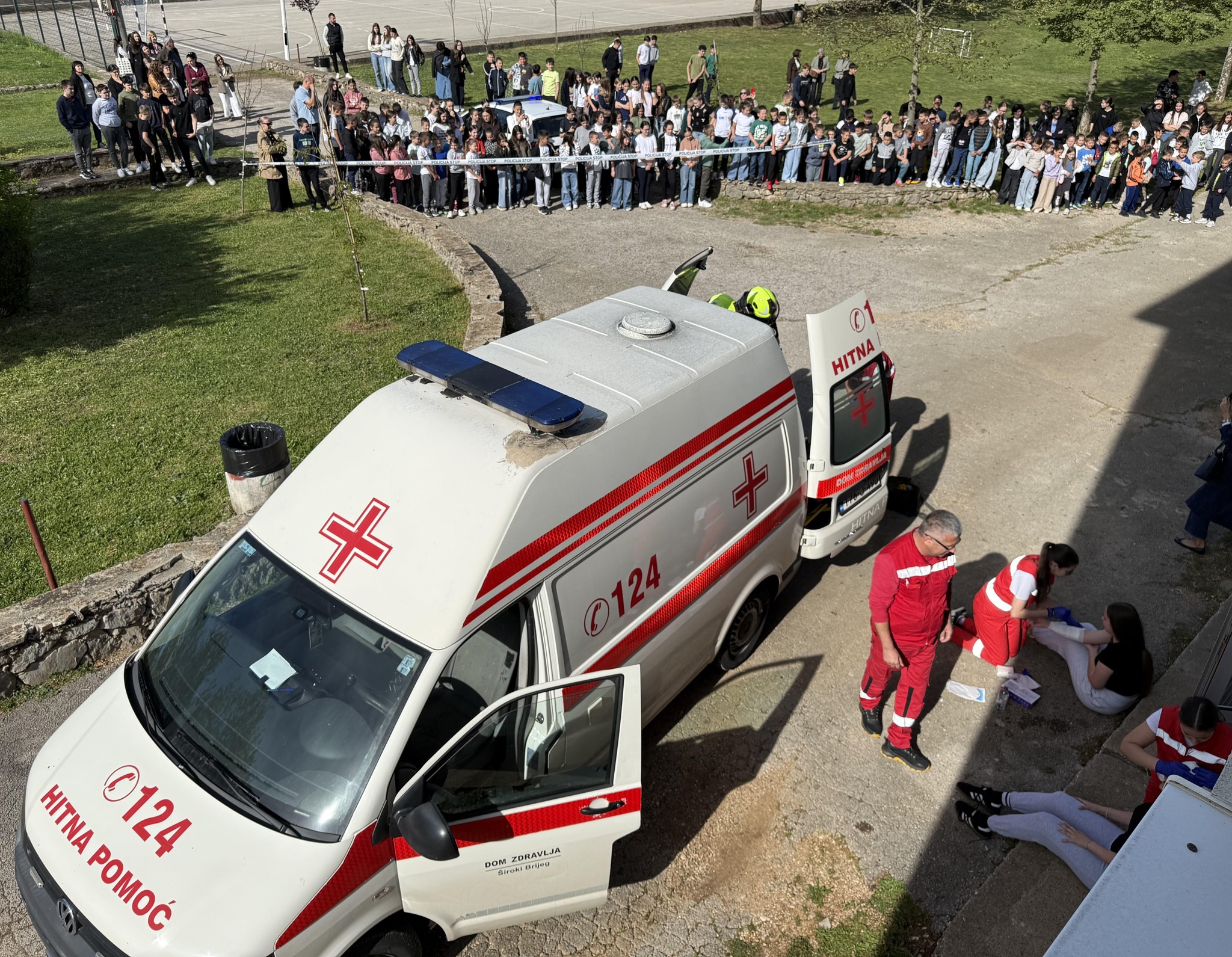 Ravnatelj Uprave civilne zaštite Županije Zapadnohercegovačke dr. sc. Drago Martinović obratio se učenicima, djelatnicima škola te pripadnicima žurnih službi i operativnih snaga civilne zaštite. Istaknuo je važnost redovitog provođenja edukacija i vježbi evakuacije.