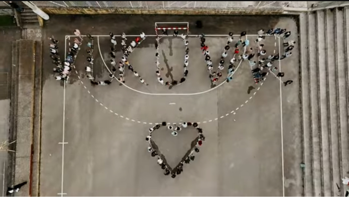 Na školskom igralištu organizirali su posebnu akciju te uz pomoć drona snimili efektan video koji prikazuje djecu raspoređenu tako da oblikuju veliki natpis “VUKOVAR”, a ispod njega i simbolično srce, kao poruku suosjećanja, poštovanja i trajnog sjećanja.