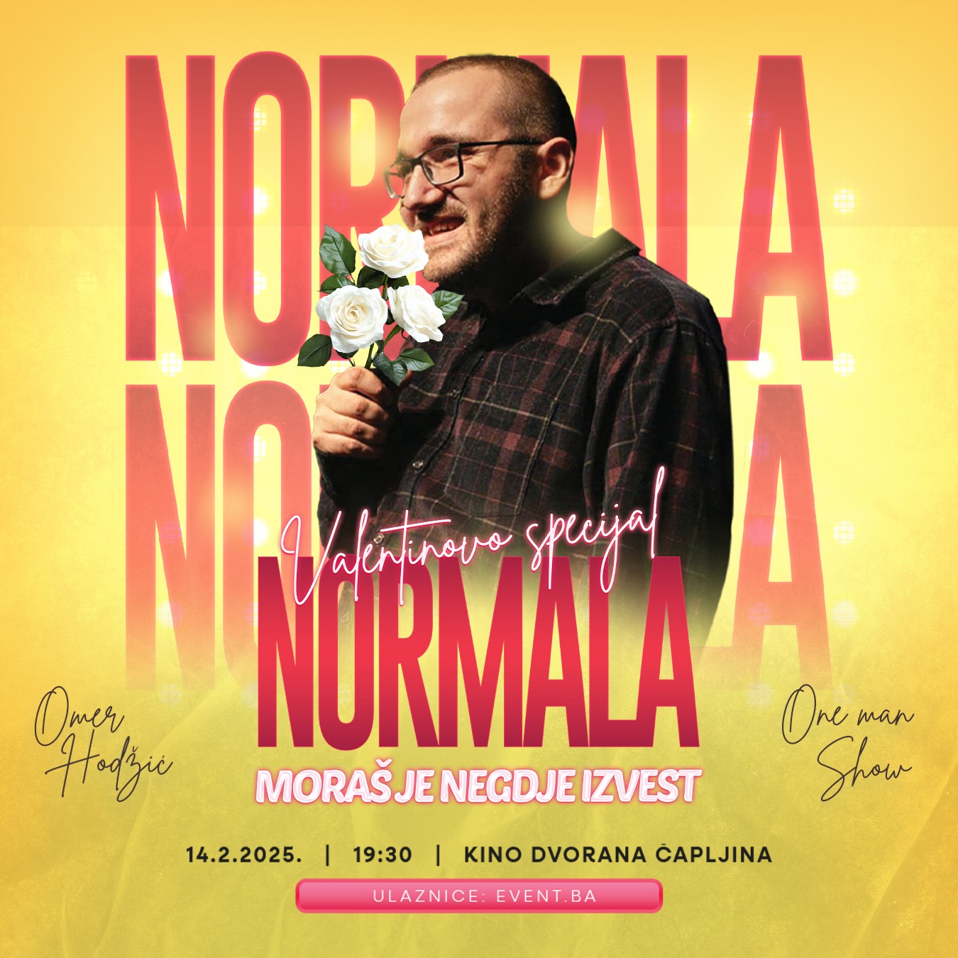 Nakon šestodnevne turneje po sjeveru zemlje, mostarski stand-up komičar Omer Hodžić Hercegovcima nudi sjajnu ideju za dejt na Valentinovo. U Kino dvorani Čapljina, 14. 2. 2025. godine, izvest će svoju predstavu “Normala” u specijalnom valentinovskom izdanju.