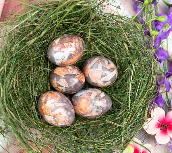 - Na kraju izvadite jaja iz najlonke, skinite lukovinu i premažite ih s malo ulja za dodatni sjaj.
