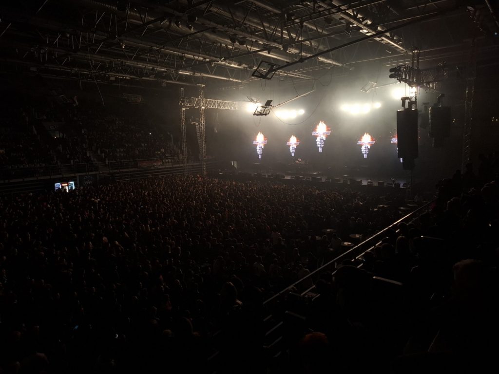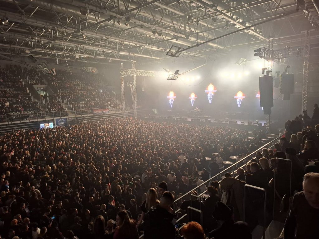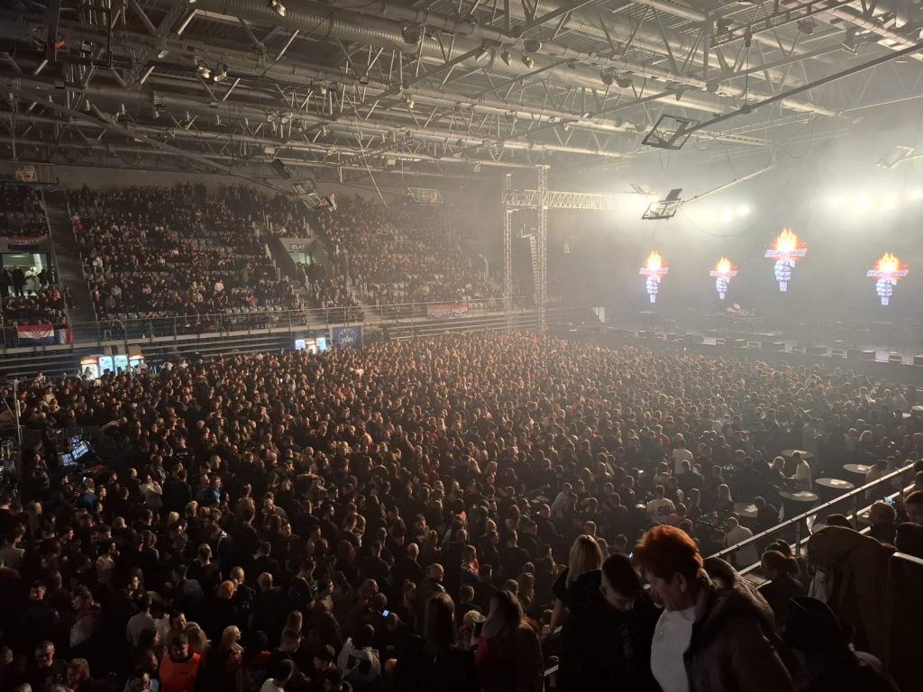 Sat vremena prije početka prvog Thompsonovog koncerta u dvorani Gradski vrt u Osijeku, dvorana je bila ispunjena skoro do posljednjeg mjesta. Što znači da je u ovom trenutku u dvorani oko 3.500 ljudi na tribinama i tko zna koliko u parteru, vjerojatno oko 2.000.