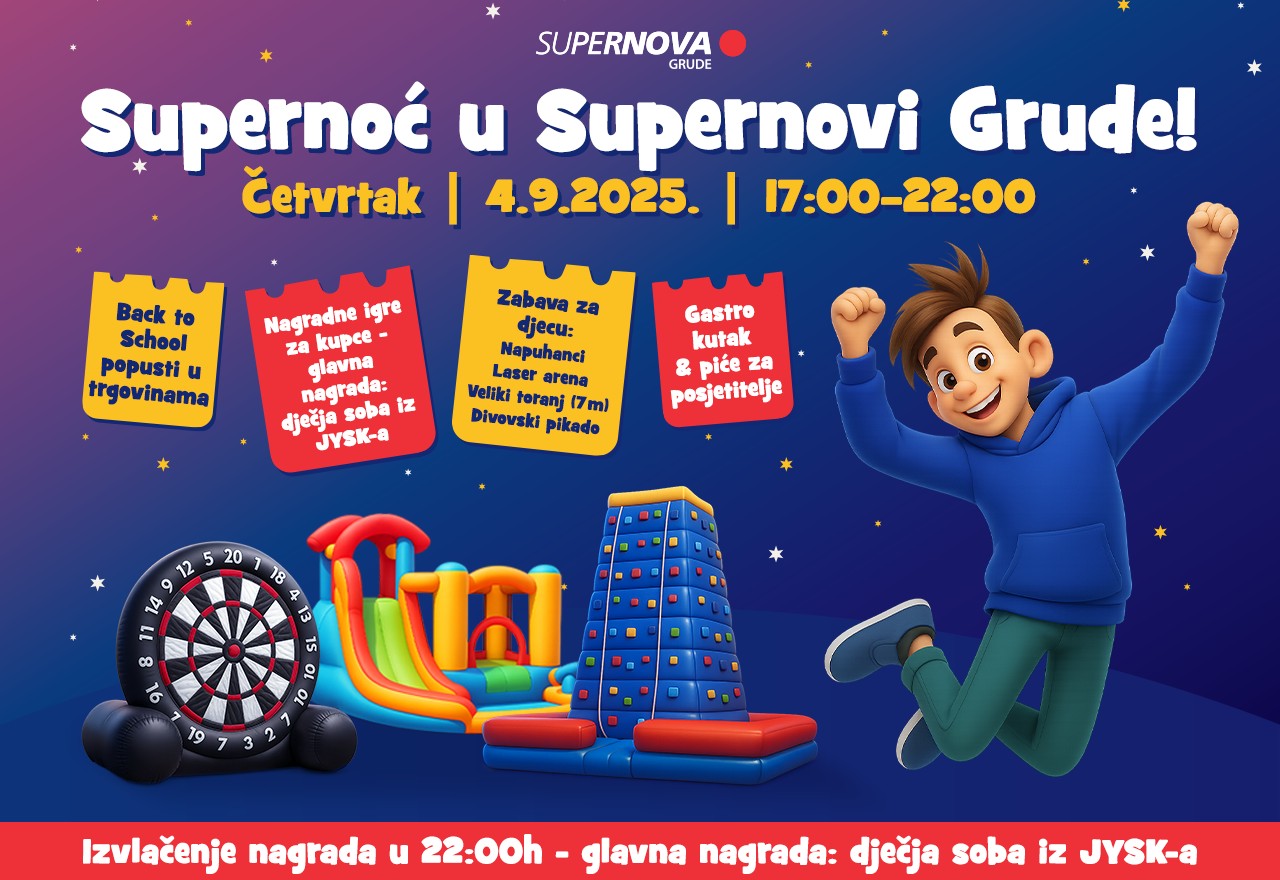 Supernova Grude u četvrtak, 4. rujna 2025., od 17:00 do 22:00 sata organizira veliki Back to school noćni shopping.
