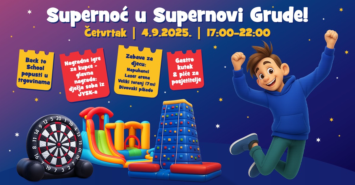 Supernova Grude u četvrtak, 4. rujna 2025., od 17:00 do 22:00 sata organizira veliki Back to school noćni shopping.