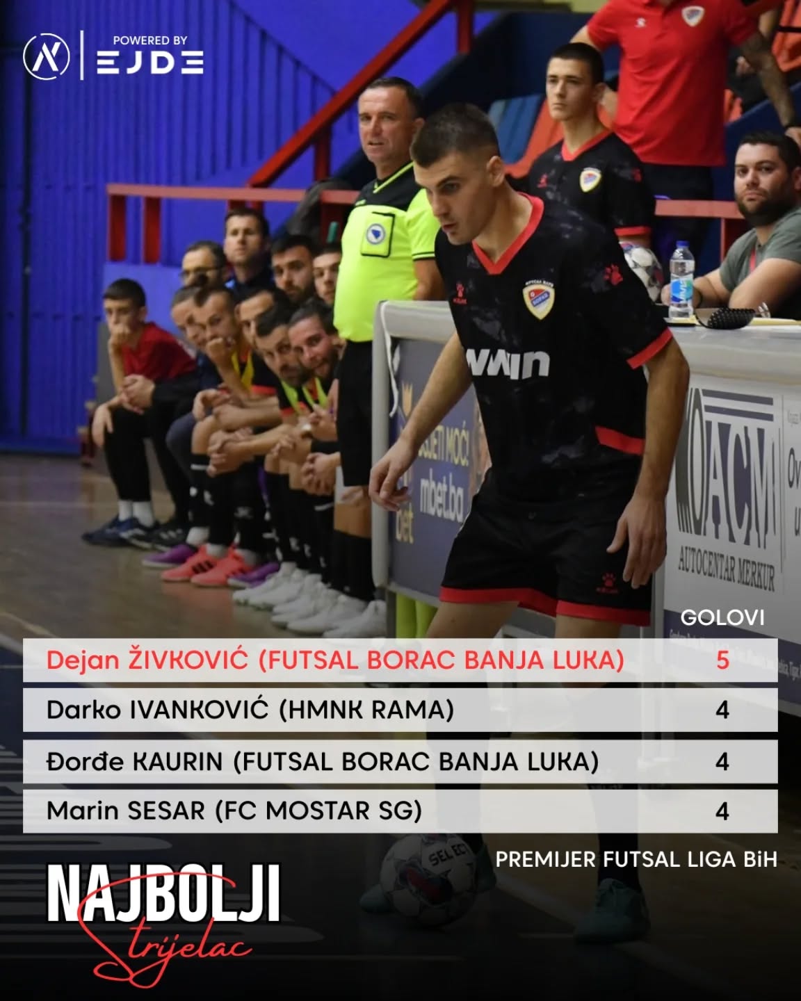 Nakon tri odigrana kola Premijer futsal lige Bosne i Hercegovine, Dejan Živković predvodi listu najboljih strijelaca.