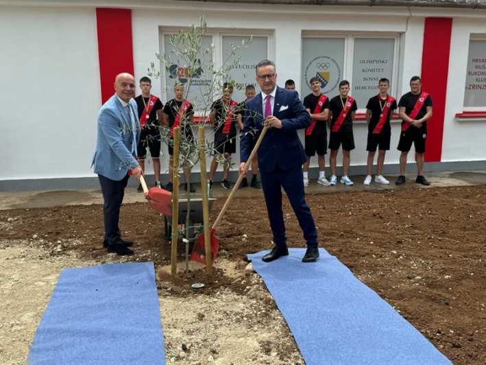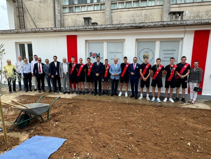 Rektor prof. dr. sc. Zoran Tomić i predsjednik OO BiH akademik prof. dr. sc. Izet Rađo zajednički su zasadili maslinu ispred Rukometnog doma u kampusu Rodoč koja simbolizirajući mir, prijateljstvo i olimpijski duh.