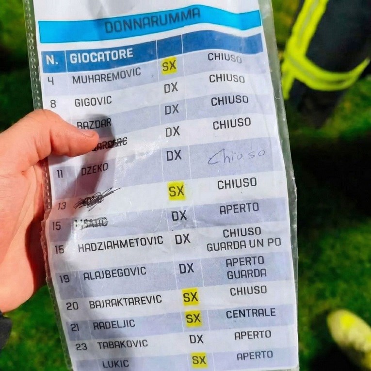 Za razliku od Vasiljevog, koji je bio napisan na običnom papiru, Donnarummin šalabahter je jako iscrpan, isprintan te plastificiran. Ovo posljednje bitno je jer je u Zenici bilo vlažno, pa su upute talijanskog golmana bile konzervirane za teške uvjete.