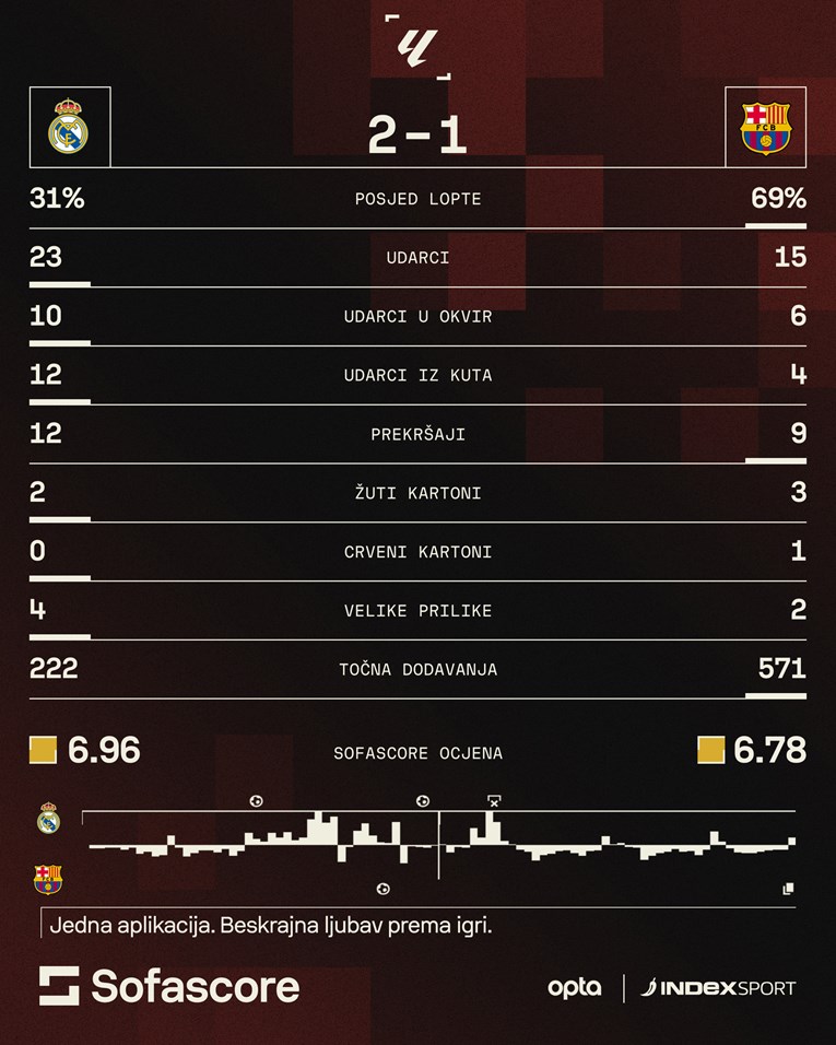Do kraja utakmice Barcelona je tražila poravnanje, no konkretniji je bio Real koji je imao dosta prostora iz kontra. Prijetili su Mbappé i Rodrygo, Brazilac je u nadoknadi pokušao i iz slobodnog udarca, no rezultat se do kraja nije mijenjao.