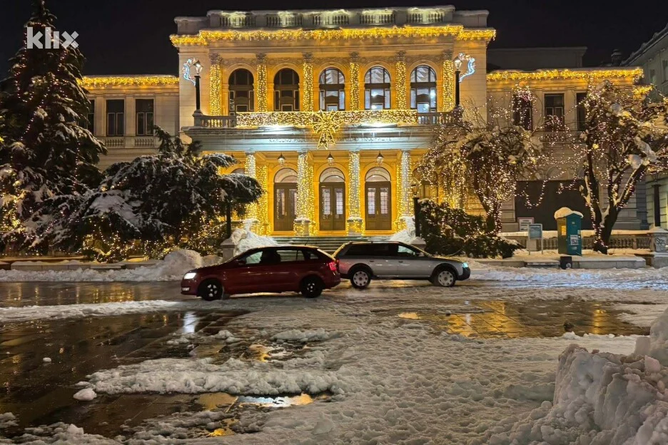 Plato ispred Narodnog kazališta, koji je djelomično očišćen od leda i snijega i na kojem je parkiranje strogo zabranjeno, u petak je pretvoren u improvizirani parking.
