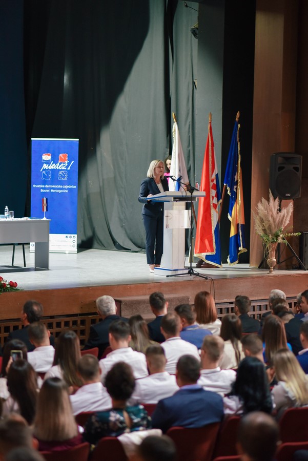 Kandidatkinja Hrvatskog narodnog sabora BiH za hrvatskog člana Predsjedništva BiH Borjana Krišto obraćajući se Mladeži HDZ-a BiH istaknula je važnost današnjeg događaja jer je upravo Program temelj rada i djelovanja HDZ-a BiH.