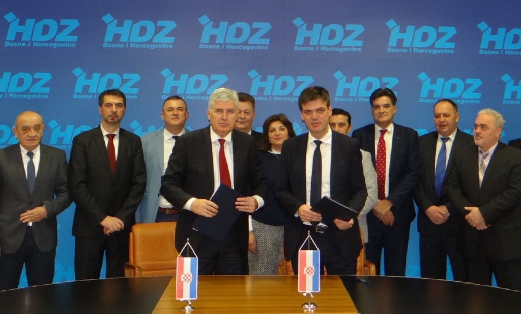 Čelnici dvije najsnažnije hrvatske stranke u Bosni i Hercegovini HDZ-a BiH i HDZ-a 1990. potpisali su prije dva tjedna sporazum o suradnji kojim je predviđeno zajedničko djelovanje na ustavnim reformama i promjenama Izbornog zakona te zajedničkom djelovanju u vlasti s ciljem ostvarivanja jednakopravnosti tamošnjih Hrvata i usmjeravanja BiH ka članstvu u EU i NATO savezu.